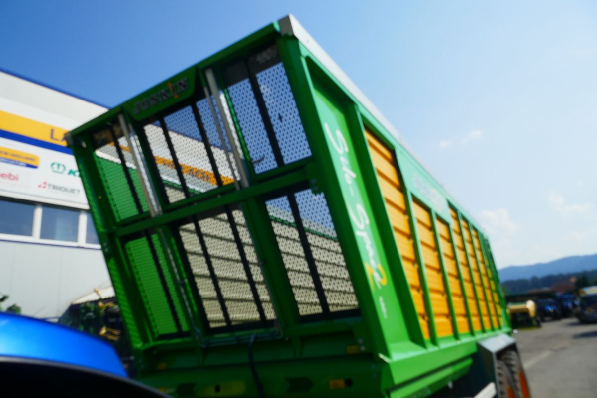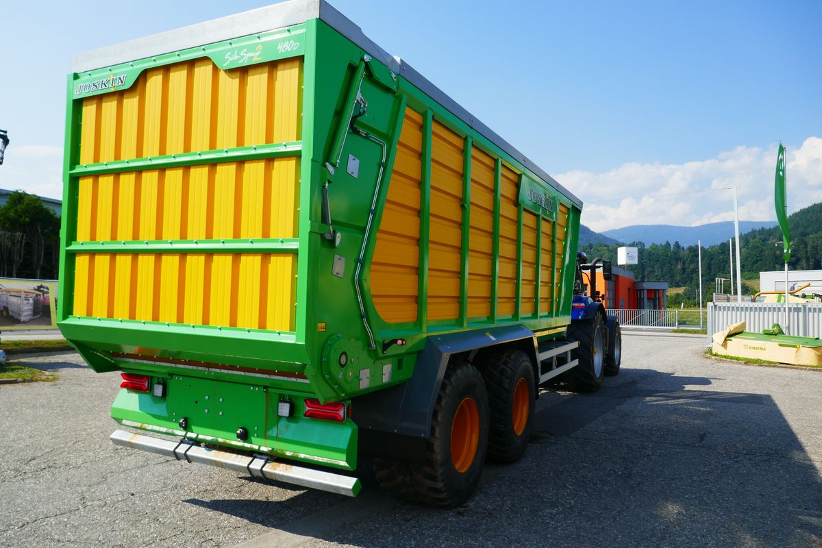 Joskin Silospace 2 480 D Abschiebewagen mit Kratzbodensystem, Zwangsgelenkte Tandemachse mit hydr. Fahrwerk, Kugelkopf Anhängevorrichtung, mit Kugelkopf K 50, Zwangslenkung, gefederte Deichsel, Bereifung: 710/50R26,5, seitlicher Auffahrschutz, mit 40 km/h Zulassung, elektrische Komfortbedienung, Ausstellungsanhänger,prompt verfügbar.