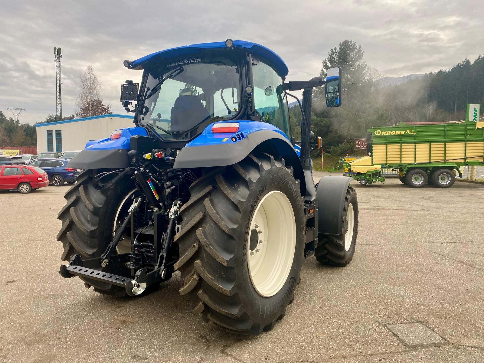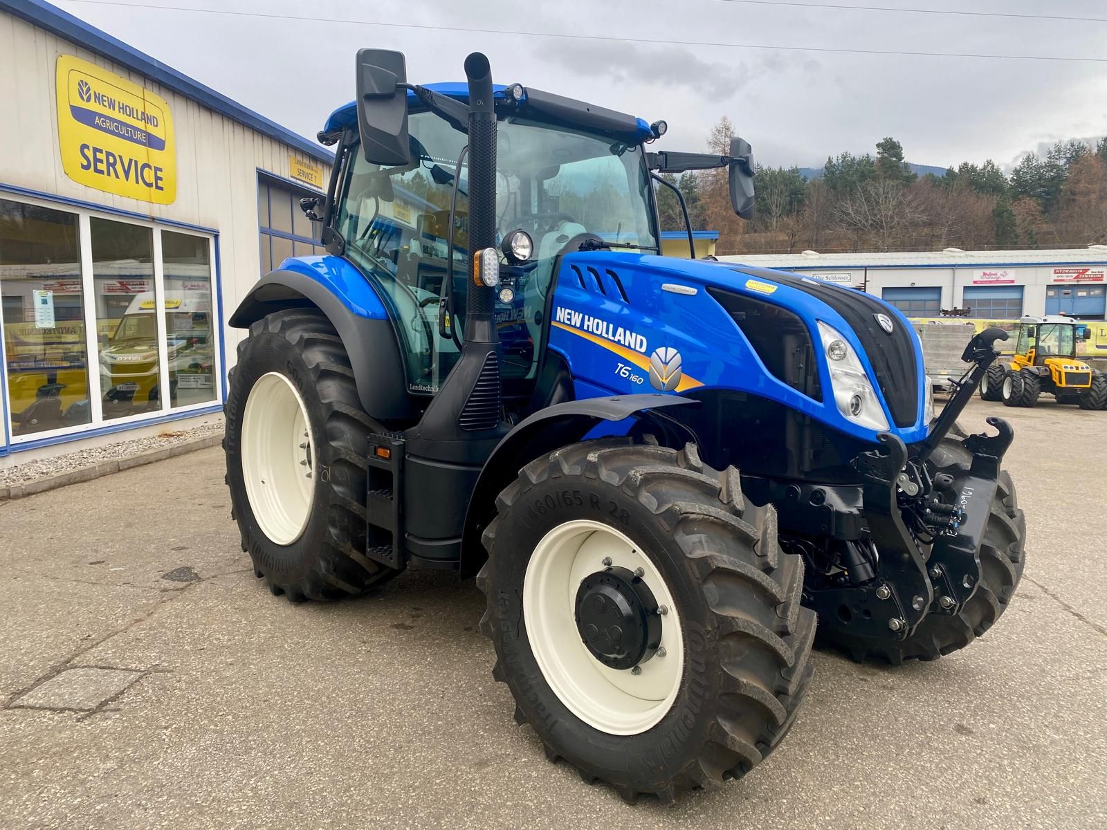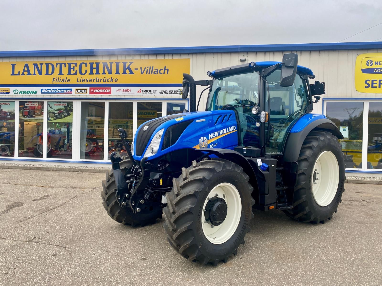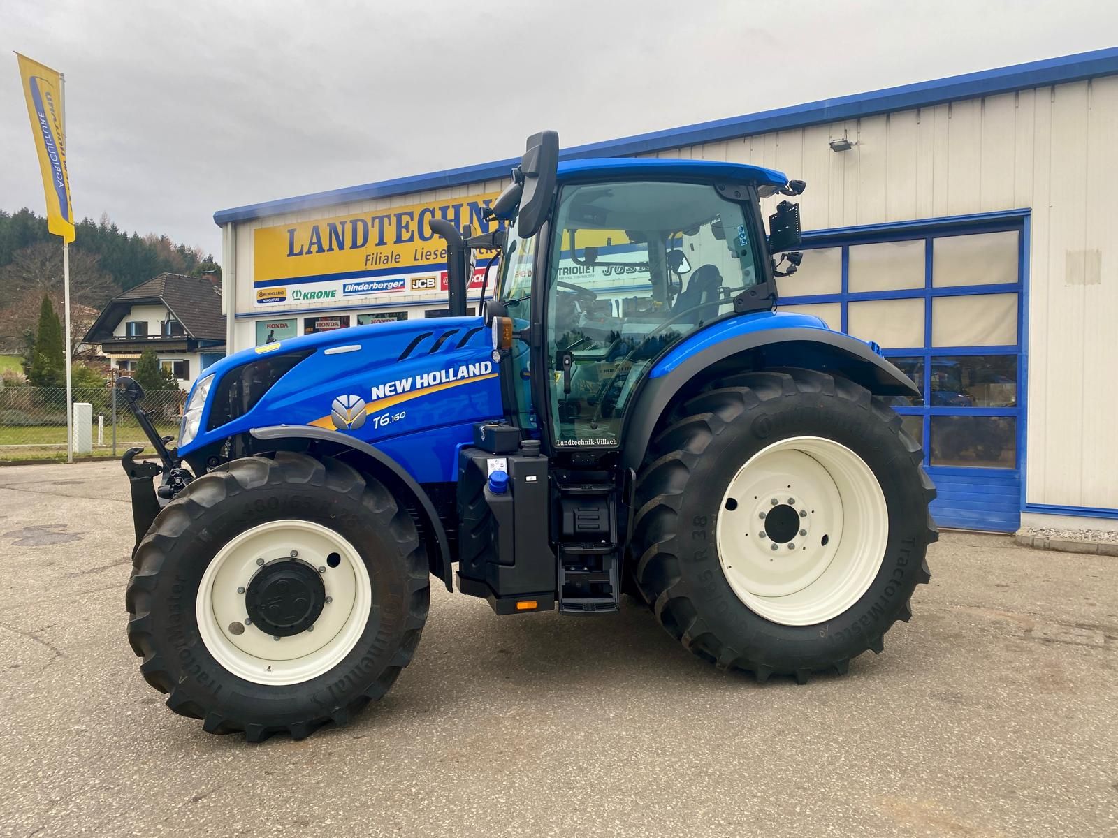 New Holland T6.160 DyC 6-Zylinder-Motor mit Motorstaubremse, Motor- und Getriebevorwärmer, 24/24, 50 km/h Dynamic Command Getriebe, 8-fach Lastschaltung mit Automatikfunktion, mit Stop & Go, gefederte Vorderachse mit 4 Radbremse und integrierter Fronthydraulik + 2 Kippleitungen, CCL Hydraulikanlage, Druckluftbremse, elektrische Parkbremse, gefederte Niedrigkomfortkabine mit SideWinder Armlehne, mit Lederlenkrad, mit Klima, Beifahrersitz, LED-Lichtpaket, 4 mechanische DW Steuergeräte für hinten, 2x DW Zwischenachssteuergerät proportional mit Joystick für vorne, Bereifung 650/65-38 u. 540/65-28, Standort: Lieserbrücke, prompt verfügbar.
