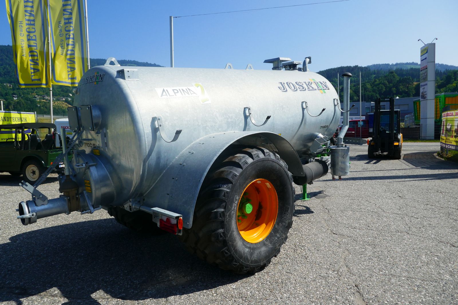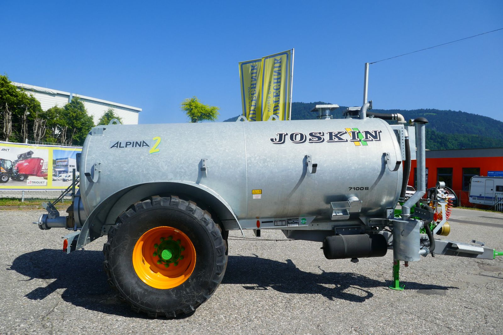 Joskin Güllefass Alpina 2 7100 S, mit Radkasteneinbau, Vakuumpumpe, MEC 8000, mit automatischer Schmierung, Öko-Siphonabscheider, Vorausrüstung Bergentleerungssystem, Bereifung: 710/45R26,5, Druckluftbremse, ALB Regler auf Füllstandsanzeiger mit Schwimmer, Glockenschieber, Ansaugschieber 6 Zoll mit schwenkbarer Klemmbacke, Typ Perrot, Exaktverteiler, 4 m Saugschlauch, einseitige Weitwinkelgelenkwelle, Standort: Lieserbrücke, prompt verfügbar.