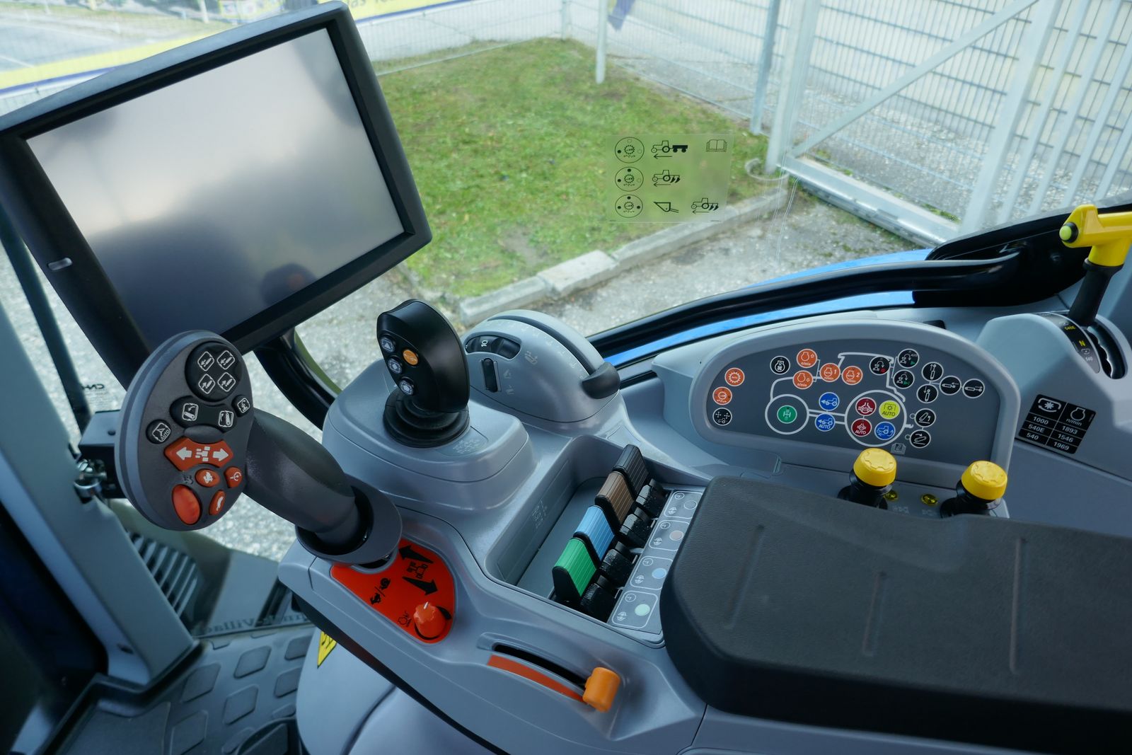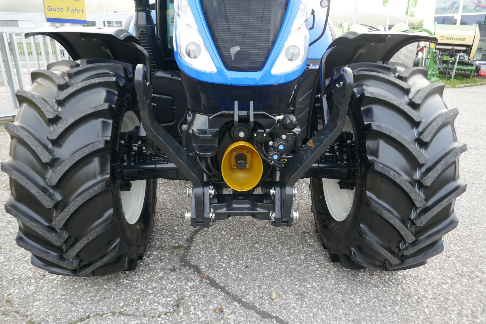 New Holland T6.180 AutoCommand - 6-Zylinder FPT Motor, mit Motorstaubremse, 50 km/h AutoCommand Getriebe mit aktiver Stillstandsregelung, Intelligentes Anhängerbremssystem, gefederte Vorderachse mit 4 Radbremse und integrierter Fronthydraulik und Zapfwelle, 2 Kippleitungen, Druckluftbremse, elektrische Parkbremse, gefederte Komfortkabine mit SideWinder Armlehne, Dynamic Komfortsitz mit Sitzheizung, Lederlenkrad, Klimaautomatik, Beifahrersitz, LED-Lichtpaket, 4 DW Steuergeräte hinten, 2 elektrische DW Zwischenachssteuergerät proportional mit Joystick für vorne, autom. Zugmaul, Bereifung 650/65-38 u. 540/65-28, Kraftstofftank mit Tankschutz, Vorbereitung Lenksystem, prompt verfügbar.