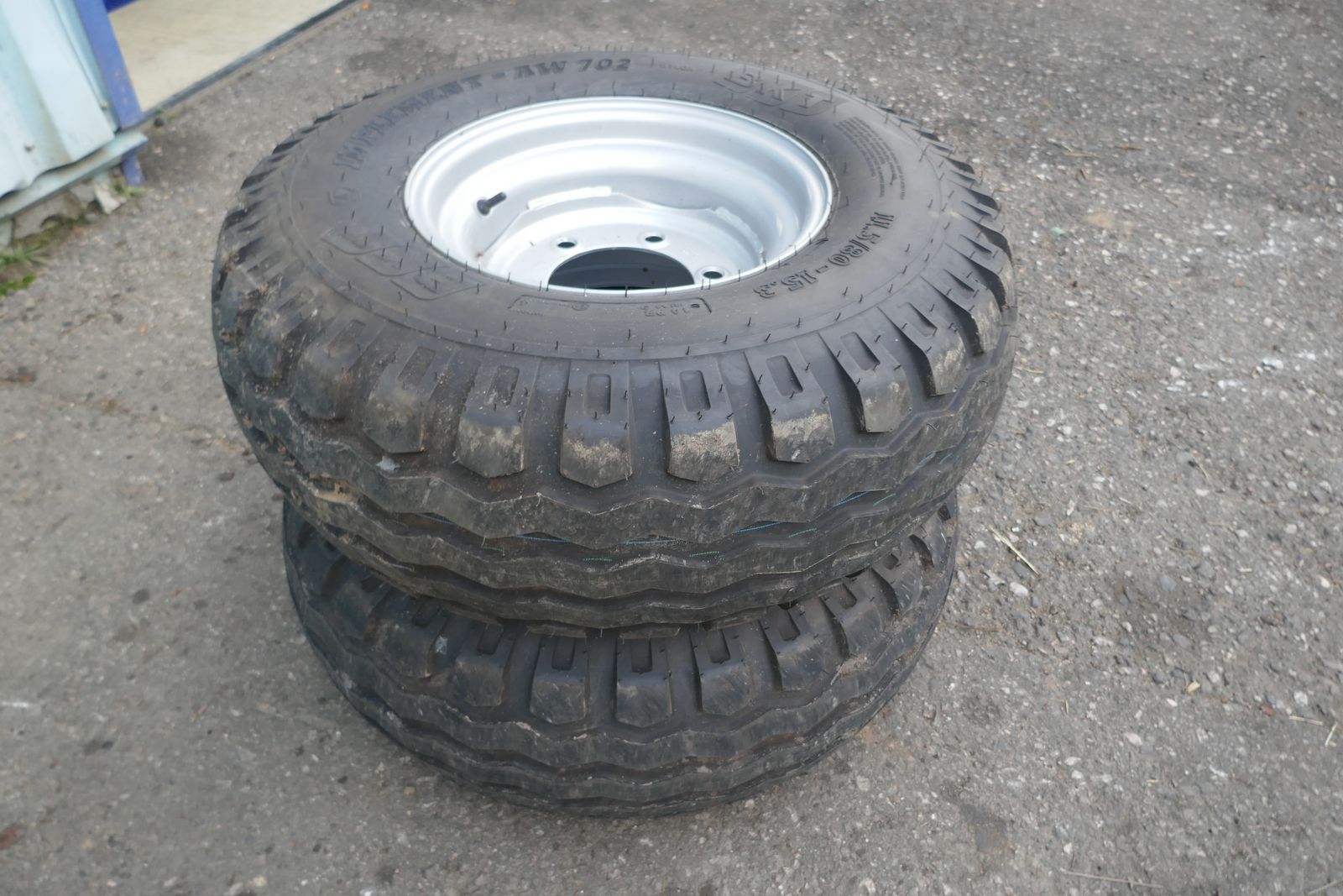 2 Stk. Kompletträder mit BKT Bereifung 11.5/80-15,3 mit 6-loch Felgen, wegen Umbereifung prompt abzugeben.