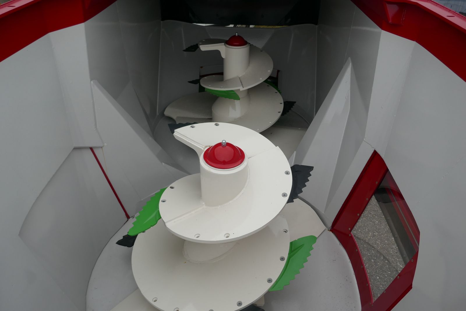 Triolit 2 Schnecken Futtermischwagen, Selbstlader, 14 m³ , mit Triotronic elektronische Wiegeeinrichtung, Magnet auf Mischschnecke, Kamerasatz mit Farbmonitor für die Sicht auf das Schneidsystem, schaltbares reduzier Getriebe, hinten mit Förderband und vorne mit hydraulischen Klappen.