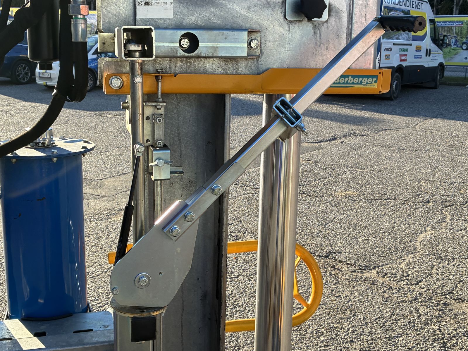 Binderberger Holzspalter H 27 Z ECO mit Doppel-Gusspumpe, und Komfort 2- Handbedienung, auf 3-Punkt Anbau, mechanisch Stammheber, Drehteller, Schutzbügel, sofort verfügbar.