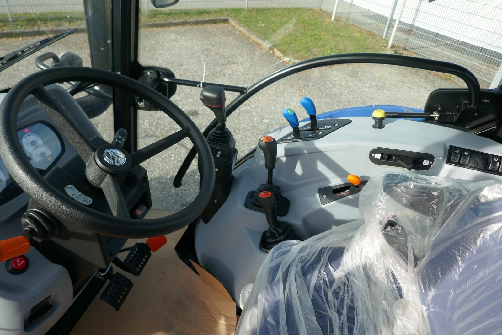 New Holland T5.90 S, mit 4-Zylinder-Motor FPT, 12x12 Powershuttle-Getriebe, 40 km/h, hydraulische Zapfwelle 540/750, mechanische Hubwerksregelung mit Lift-O-Matic, mit 2 außenliegenden Hubzylinder und Schnellkuppler, 2DW Steuergeräte für hinten, 2x DW mit Joystick für Frontlader,hydraulisches Anhängerbremsventil, Bereifung: 480/70 R34 und 380/70 R24, Komfortkabine mit Luftsitz, Beifahrersitz, Klimaanlage, Radio, Lichtpaket, Kraftstofftank mit Tankschutz, Scharmüller stufenlos verstellbare Anhängevorrichtung, hydraulisches Bremsventil, günstige CNH-Finanzierung für Österreich, prompt verfügbar.