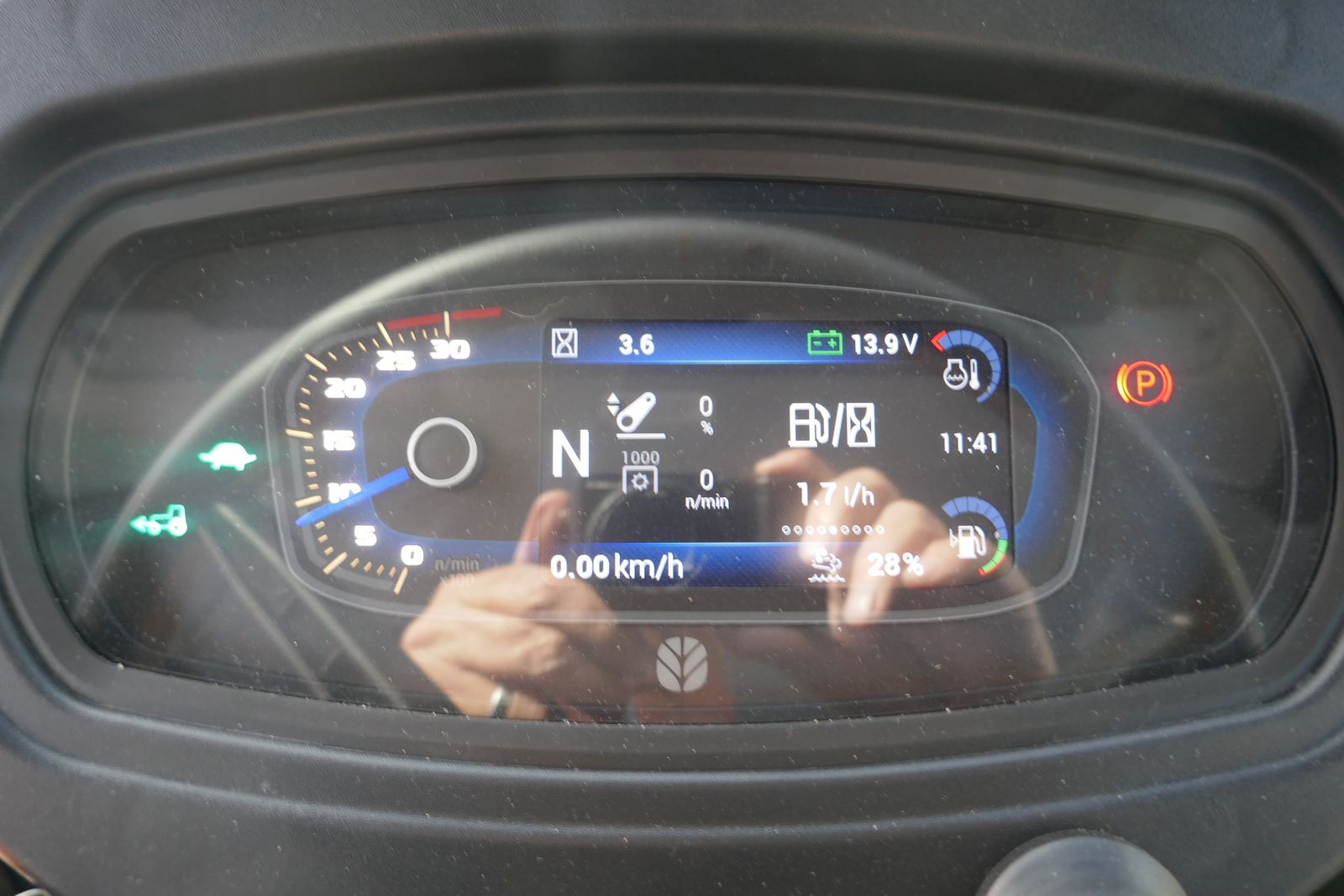 New Holland T5.110 DC, 4-Zylinder und 4 Ventiltechnik, 24x24 Powershuttlegetriebe mit Stop & Go Funktion und mit Lastschaltung 40 km/h, mechanische Parksperre, Hydraulik Hubkraft 4,7 t, 80 L Hydraulikpumpen Leistung, 3x DW Steuergeräte hinten, Druckluftbremse, EHR mit Außenbetätigung, 2x DW Zwischenachssteuergerät mit Joystick, auch mit Powershuttlefunktion, Lastschaltung und Drehzahlspeicher, gefederte Komfortkabine, mit LED Lichtpaket, ergonomisch mit Klima, Dachfenster, Beifahrersitz, Luftsitz, verstellbare Lenksäule, neues digitales Armaturenbrett, Radio, LED-Lichtpaket, integrierte Fronthydraulik, Bereifung: 540/65-34 und 440/65-24, prompt verfügbar.