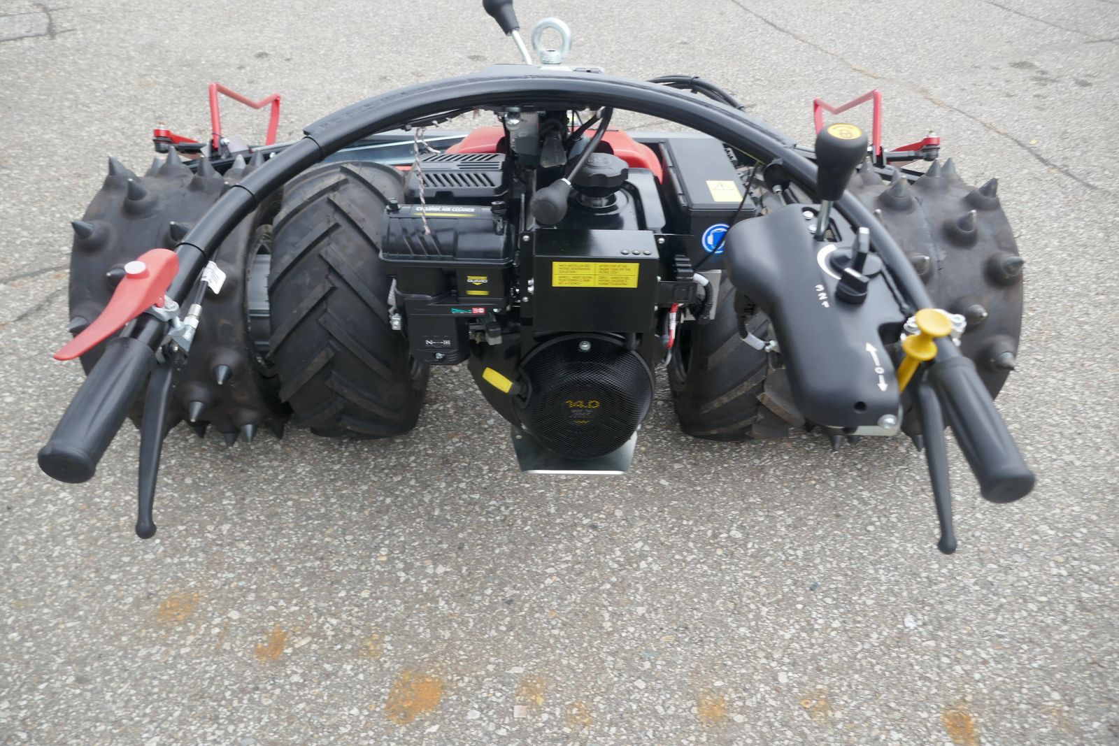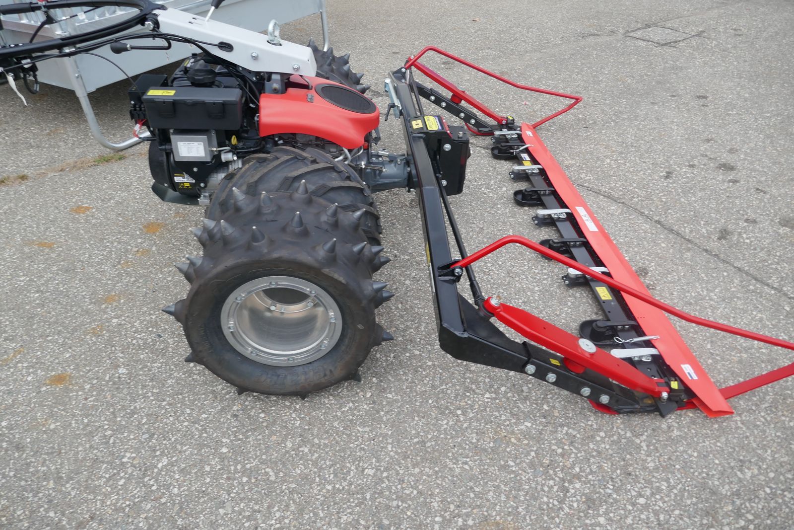Aebi CC 36 Hydro Motormäher mit 4-Takt-Motor, 14 PS, Hydroantrieb, 3 stufig verstellbar, mit Ölkühler, Lenkbremse, Lenkhebellenkung, Kombiebereifung 23x10.50-12 + Gummi Stachelrad LS Grip 12", mit Portalachsmähwerk 2 m, 1 Satz Reservemesser, Ausstellungsmaschine, prompt verfügbar.