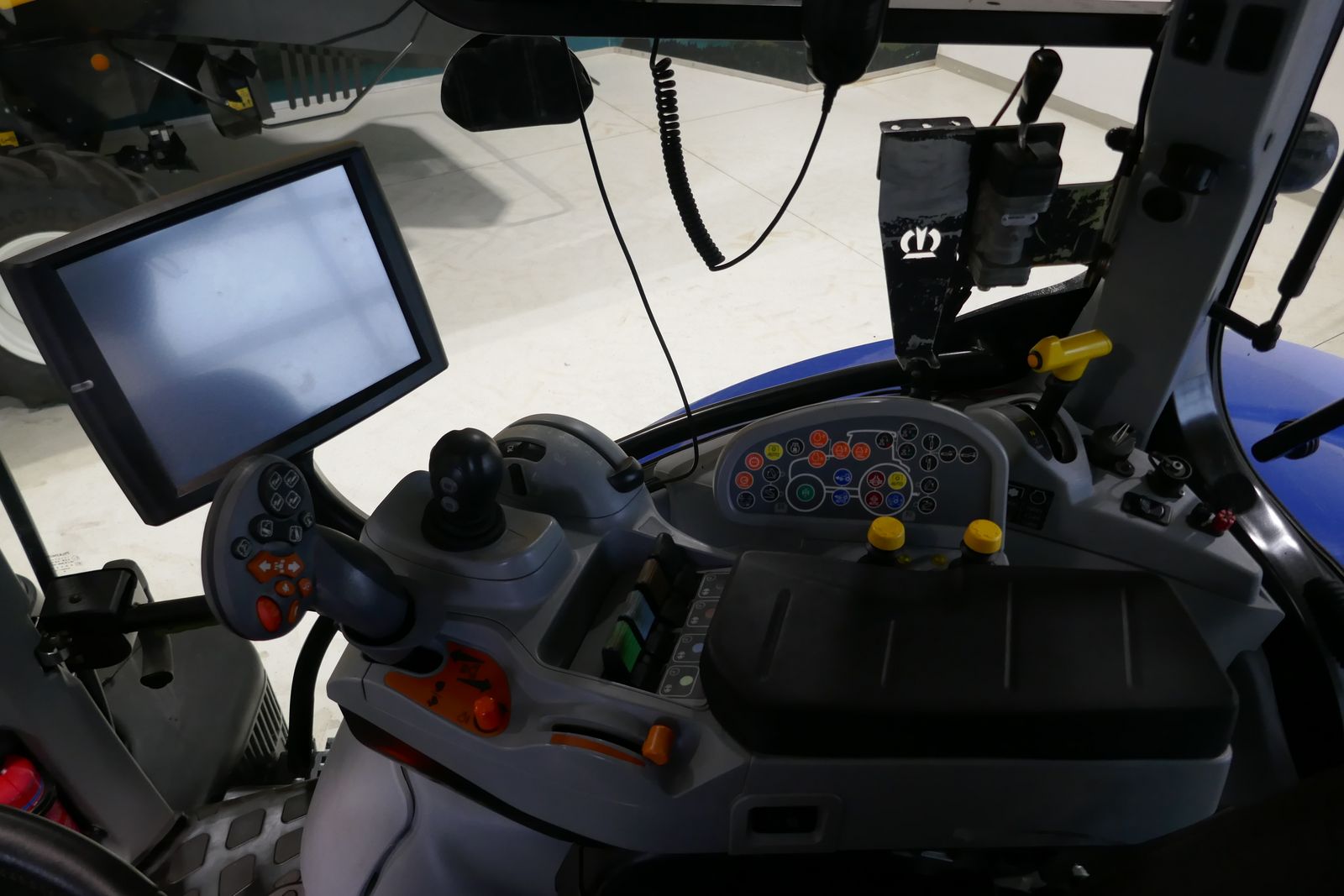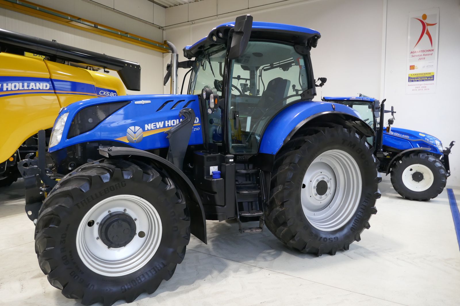 New Holland T7.190 AC, 50 km/h, gefederte Vorderachse, gefederte Komfortkabine mit LED-Arbeitsscheinwerfer, Dynamik Komfortsitz mit Sitzheizung und Klimaautomatik, Fronthydraulik und Frontzapfwelle, Stoll Frontladerkonsole mit Joystick und Multikuppler, 6 x DW Steuergeräte elektronisch, Motorstaubremse, ITBS - intelligentes Anhängerbremssystem, hydraulische Bremse, druckloser Rücklauf, Druckluftbremsanlage mit Streckfunktion, Lederlenkrad und Bodenmatte, Bereifung: 650/65R 42 und