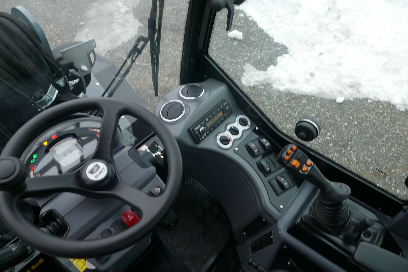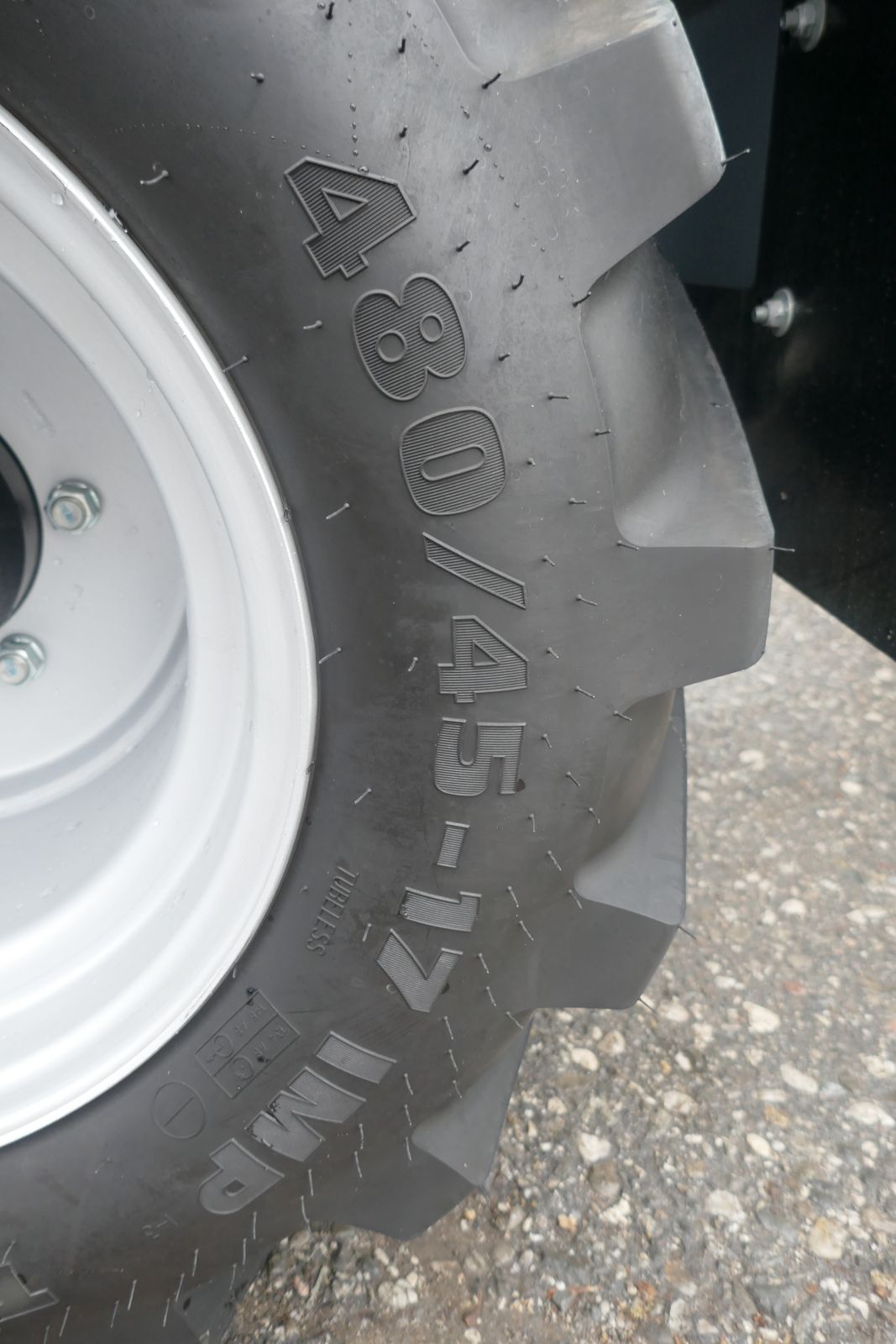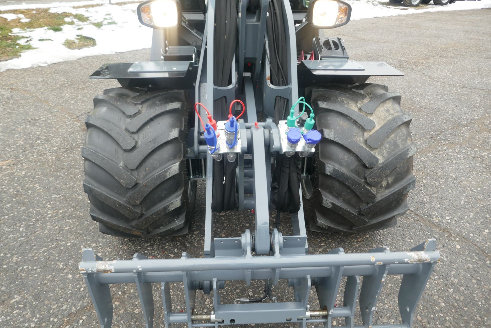 LED - Lichtpaket, Radio, 30 km/h Ausführung, mit Euro-Werkzeug-Aufnahme, hydr. Verriegelung, Schwingungsdämpfer am Hubzylinder, Zusatzanschlüsse an der Schwinge, Bereifung: 480/45-17 AS, Kotflügel Verbreiterung, Heckgewichtsplatte 200 kg unter der Maschine, Straßenzulassung, leichte Vorführmaschine, prompt verfügbar.