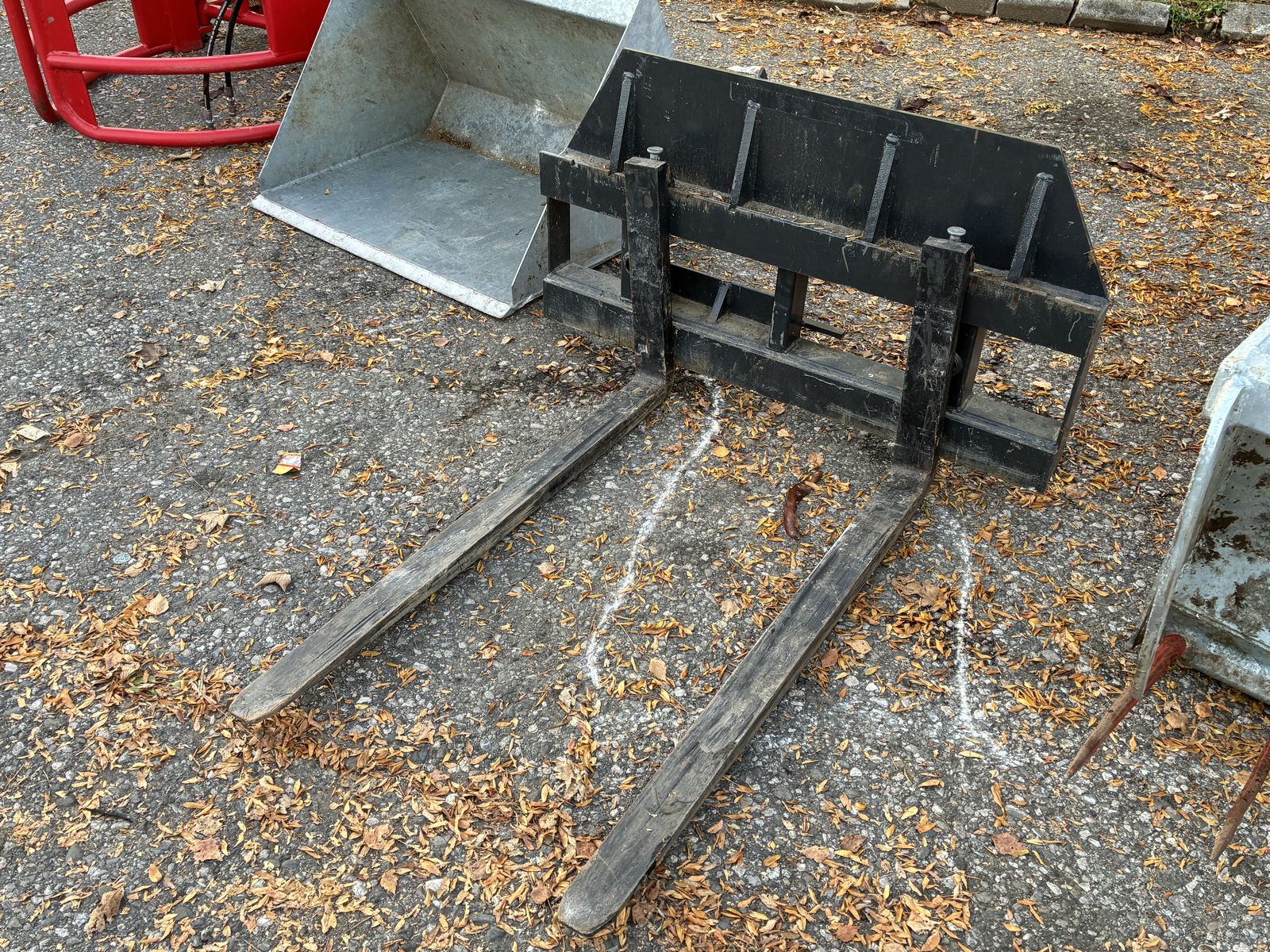 Schaufel (100cm), Krokogebiss (80 cm), Ballenzange, Palettengabel (120 cm) anbei, prompt verfügbar.