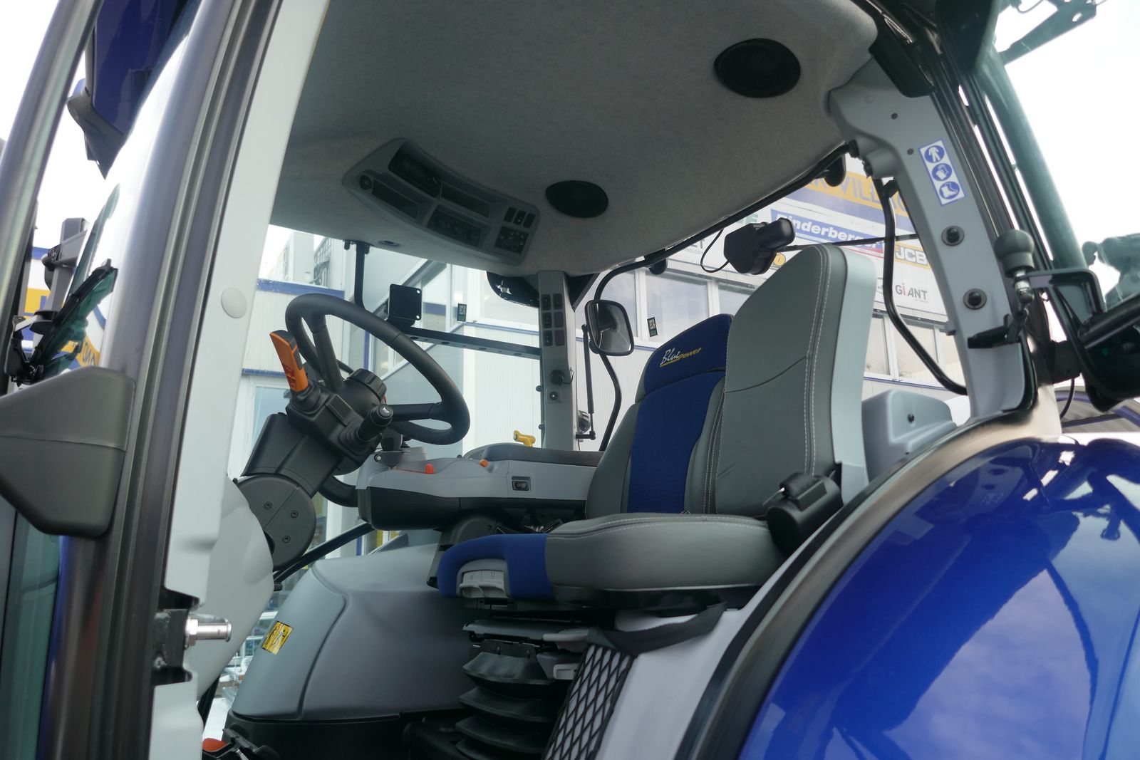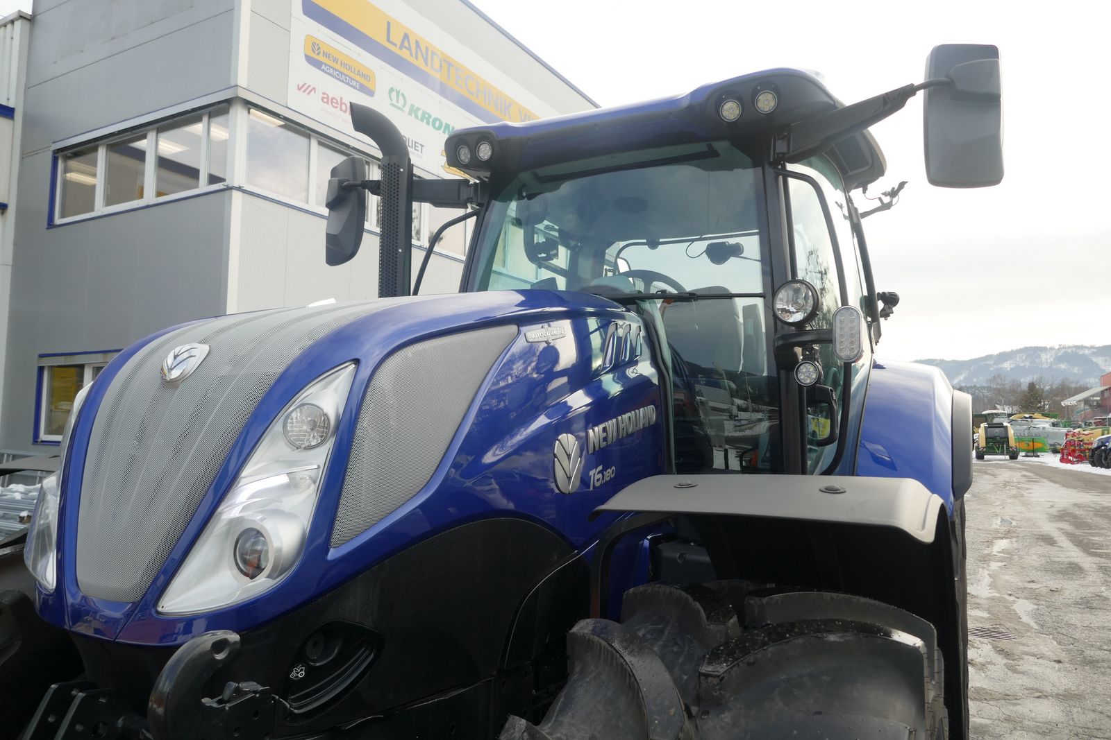 New Holland T6.180 AC Blue Power, 6-Zylinder FPT Motor mit Motorstaubremse, 50 km/h mit aktiver Stillstandsregelung, elektrische Parkbremse, integrierte Fronthydraulik mit Zapfwelle und zwei Kippleitungen und elektrischen Steckdosen, 4 elektrische Steuergeräte für hinten + Power Byond Anschlüsse, 2x DW elektrische Steuergeräte mit erweiterndem Joystick auf Bedienarmlehne inkl. Schaltknöpfe, Druckloser Rücklauf, Bereifung: 650/65-38, 540/65-28, Druckluftbremse, gefederte Vorderachse mit hydraulischer 4-Rad-Bremse, gefederte Komfortkabine mit Dynamic Comfort Sitz, Klimaautomatik, Lederlenkrad, Beifahrersitz, Radio und LED-Lichtpaket, ITBS (Intelligentes Anhänger Bremssystem), Kraftstoffstank mit Tankschutz, Schultraktor, Maschine prompt verfügbar.