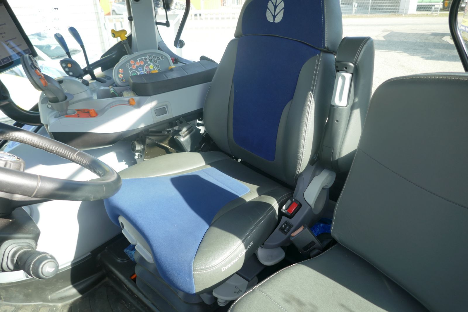 NH T5.140 AC mit 4,5-Liter-Motor FPT mit gefederter Vorderachse, integrierte Fronthydraulik mit Zapfwelle und mit 2 Kippleitungen, 7-polige Steckdose und Außenbetätigung, Bereifung 600/65-38 u. 480/65-28 Michelin, 3x DW Steuergeräte elektrisch mit Joystick 2 davon mechanisch, Druckluftbremse, druckloser Rücklauf, Oberlenker, gefederte SuperVision Niedrigkabine mit Panorama Fenster, Dachluke, Klima, LED-Lichtpaket, Comfort Sitz mit Heizung, Beifahrersitz, SideWinder Bedienarmlehne, IntelliView Monitor Plus, Vorbereitung für Lenksystem, Lederlenkrad, Vorführmaschine, prompt verfügbar!