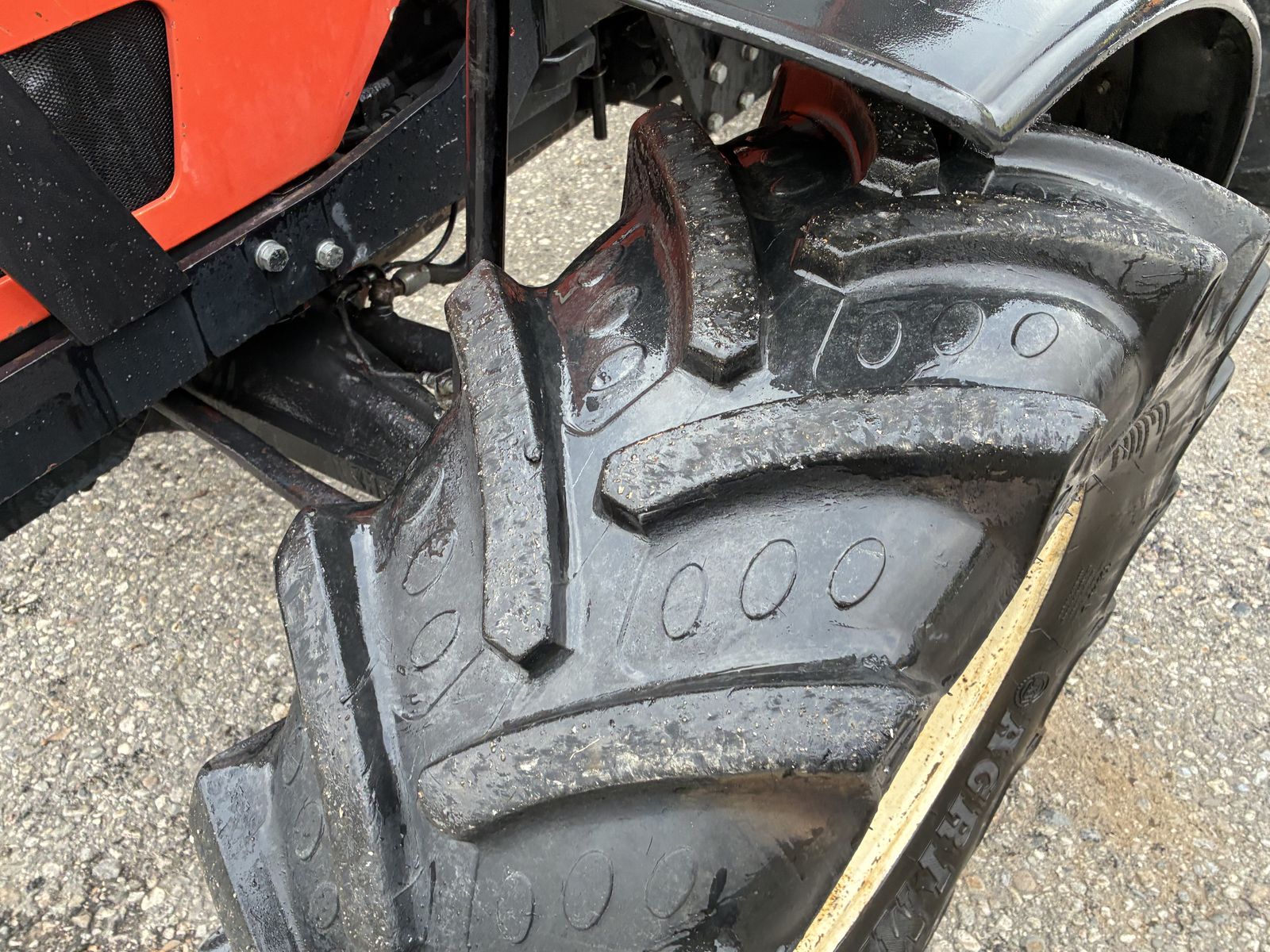 Bereifung: 420/70 R 28 und 360/70-20, hydraulische Vierradbremse,