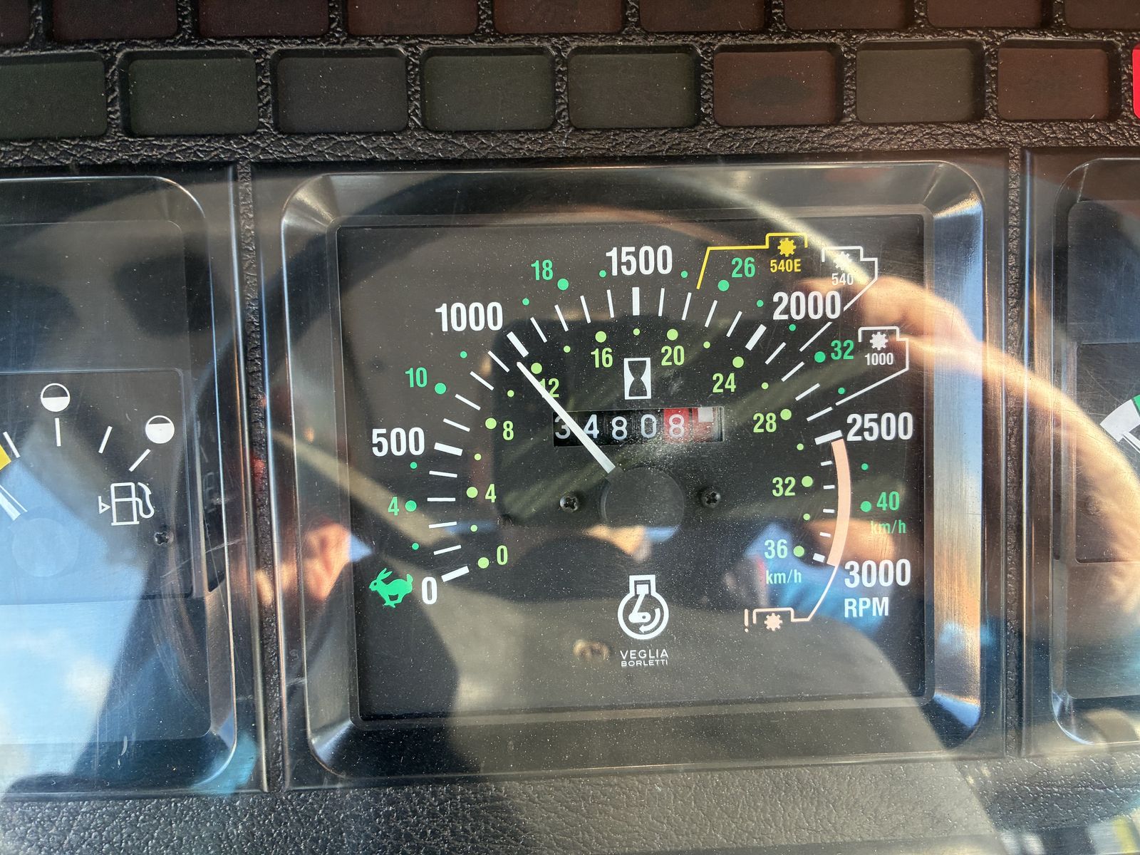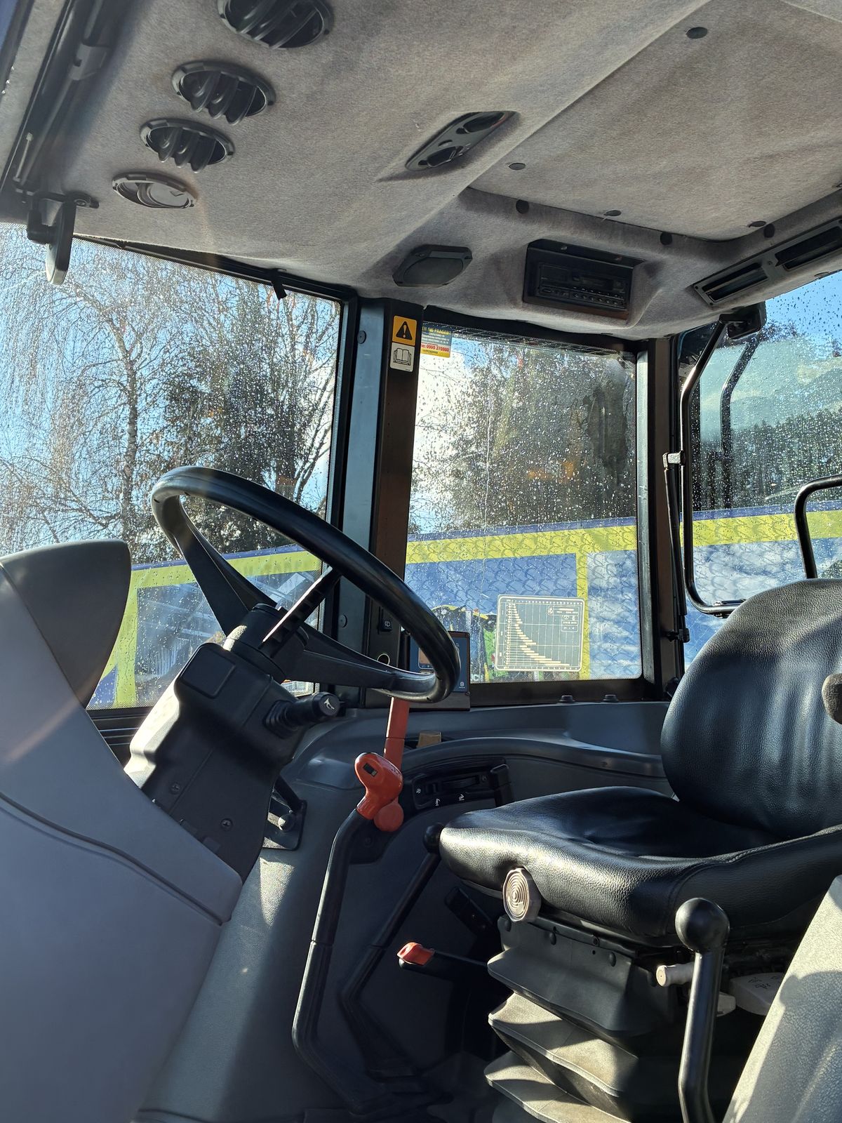Fronthydraulik & Frontzapfwelle mit 2 Kippleitungen nach vorne, Komfortkabine mit Heizung und Lüftung, Radio, Luftsitz, Dachfenster, Beifahrersitz, 2 x DW hinten, hydraulisches Bremsventil, druckloser Rücklauf,