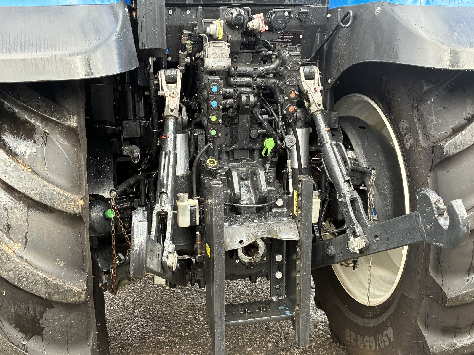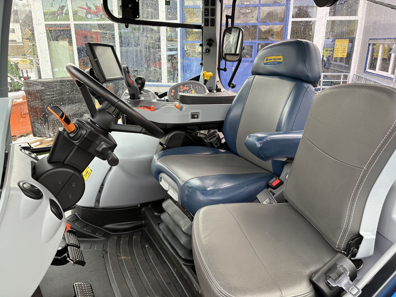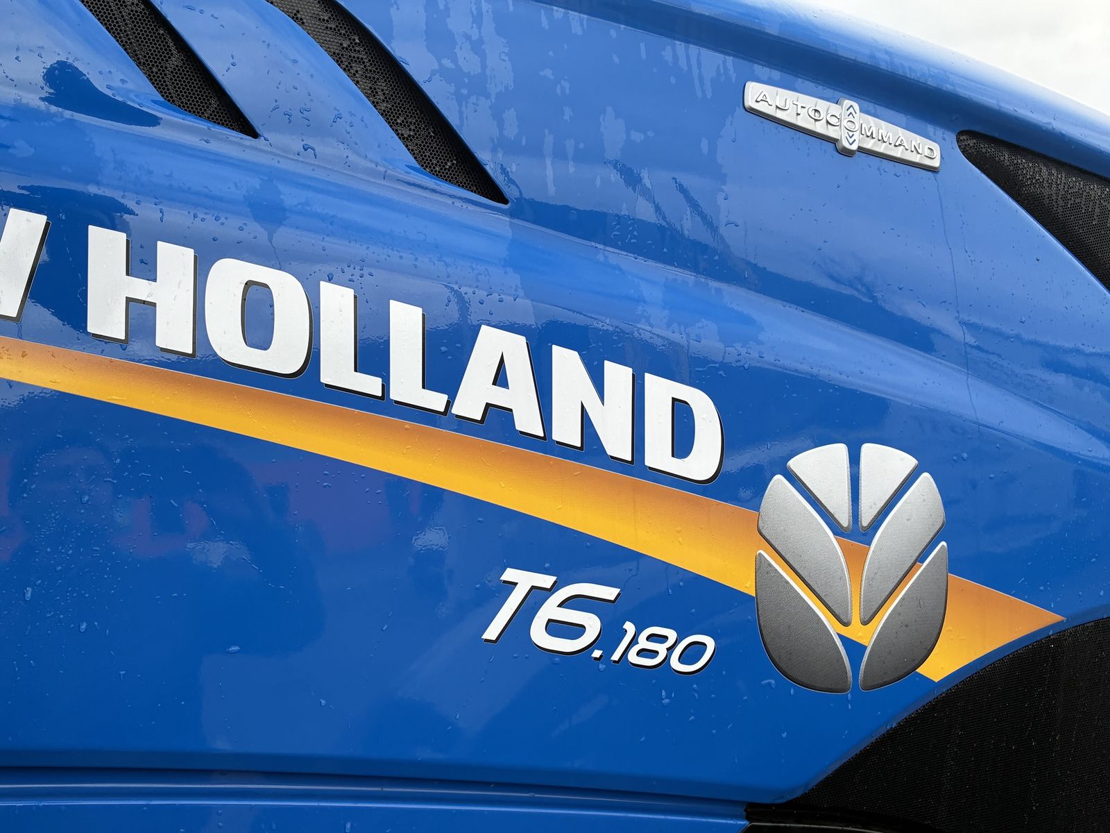 New Holland T6.180 AutoCommand - 6-Zylinder-Motor- und Getriebevorwärmer, mit Motorstaubremse, 50 km/h AutoCommand Getriebe mit aktiver Stillstandsregelung, gefederte Vorderachse mit 4 Radbremse und integrierter Fronthydraulik und 2 Kippleitungen, Druckluftbremse, hydraulisches Bremsventil, elektrische Parkbremse, gefederte Komfortkabine mit SideWinder Armlehne, Dynamic Komfortsitz mit Sitzheizung, Lederlenkrad, Klimaautomatik, Beifahrersitz, LED-Lichtpaket, 4 DW Steuergeräte hinten, 2 elektrische DW Zwischenachssteuergerät proportional mit Joystick für vorne, autom. Zugmaul,