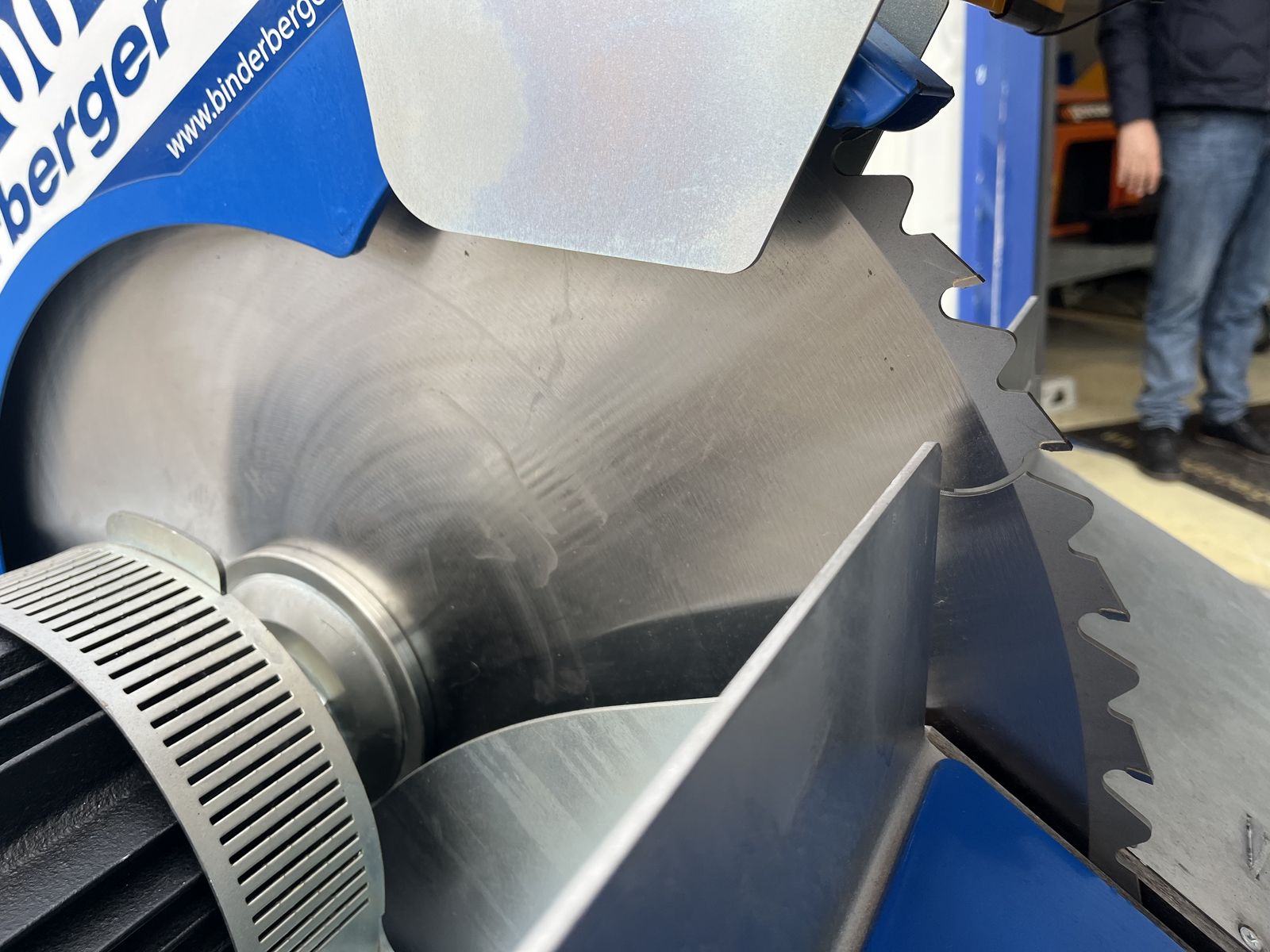 Binderberger ,Made in Austria'' Wippkreissäge WS 700 E, mit E - Motor 5,5 kW, HM-Sägeblatt, verzinkter Rahmen, zum Transport mit Rädern ausgestattet, Ausstellungsmaschine, prompt verfügbar.