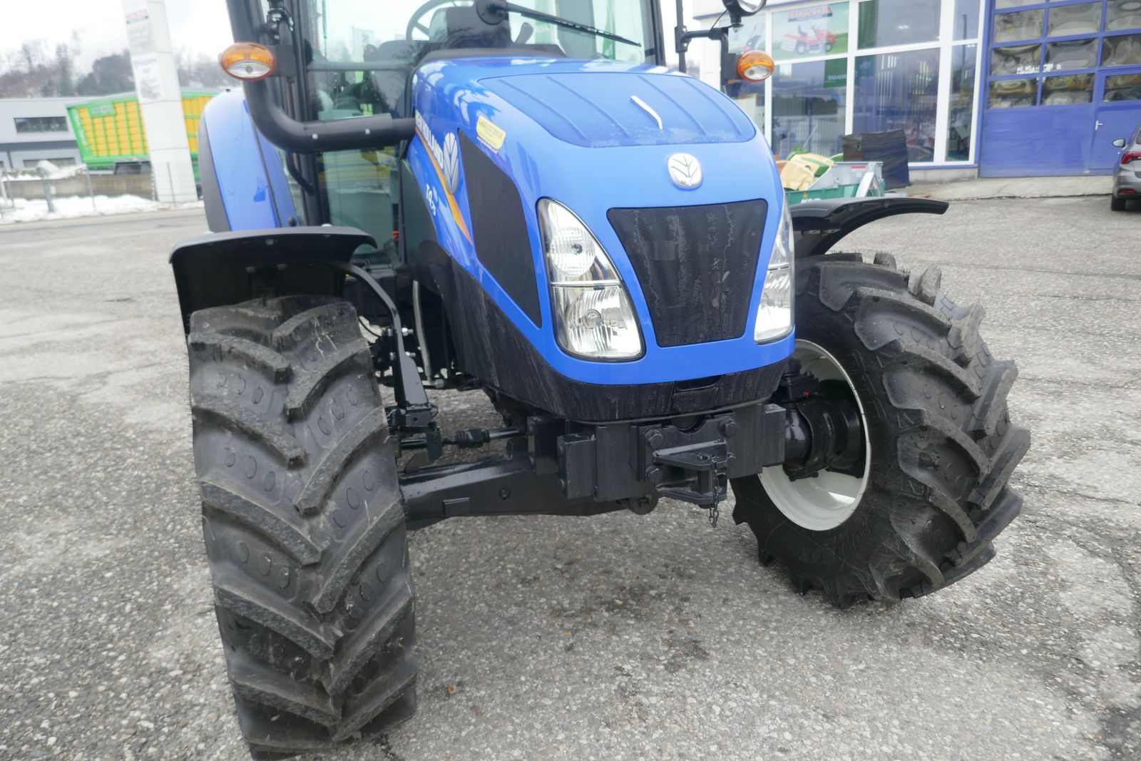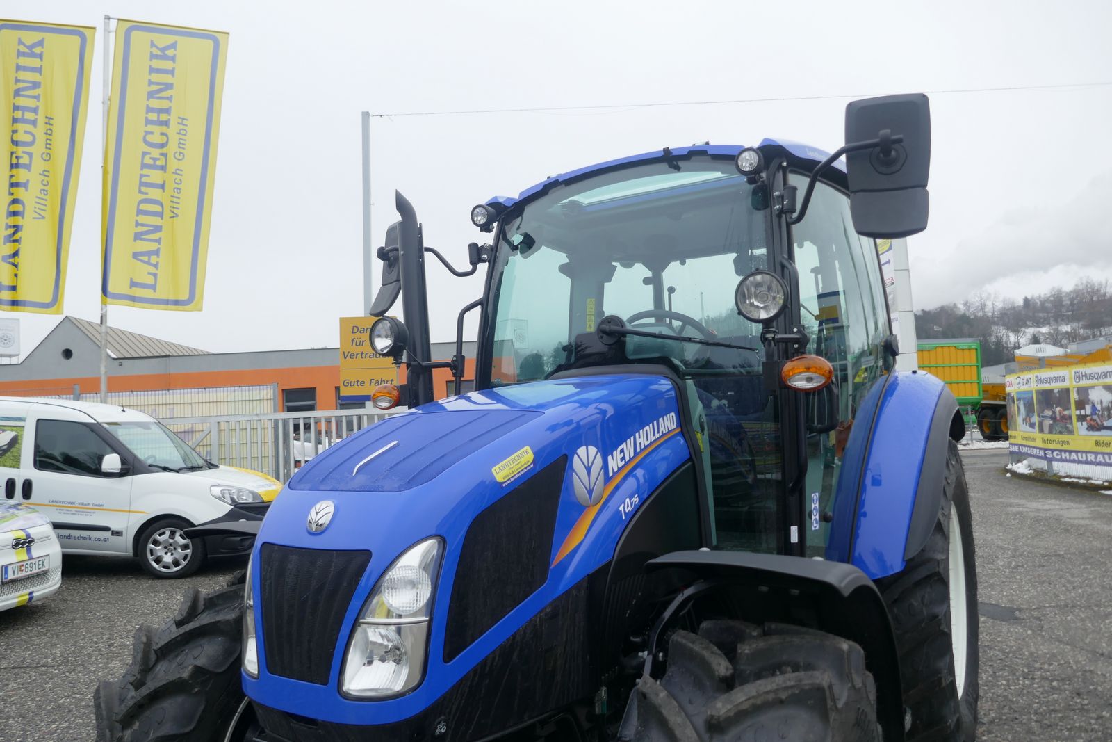New Holland T4.75 mit 4 Zylinder, Powershuttle Getriebe, mit 40 km/h, mechanische Parkbremse, 2x DW DeLuxe Hecksteuergeräte, 2x DW Zwischenachssteuergeräte mit Joystick und Schalter für 3. Funktion, mechanische Hubwerksregelung mit Lift-O-Matic, hydraulisches Bremsventil, Komfortkabine mit Klimaanlage, Luftfedersitz, Beifahrersitz, Freisichtdachfenster, feste Frontscheibe, Lichtpaket, Radio, Wisch/Waschanlage für vorne und hinten, Kotflügel vorne mit schwenkend, Kotflügelverbreiterung hinten, hydr. Zapfwellenschaltung 540/540E, verstellbares Lenkrad, automatisches Anhängemaul, Bereifung: 360/70-20, 420/70-30, prompt lieferbar.