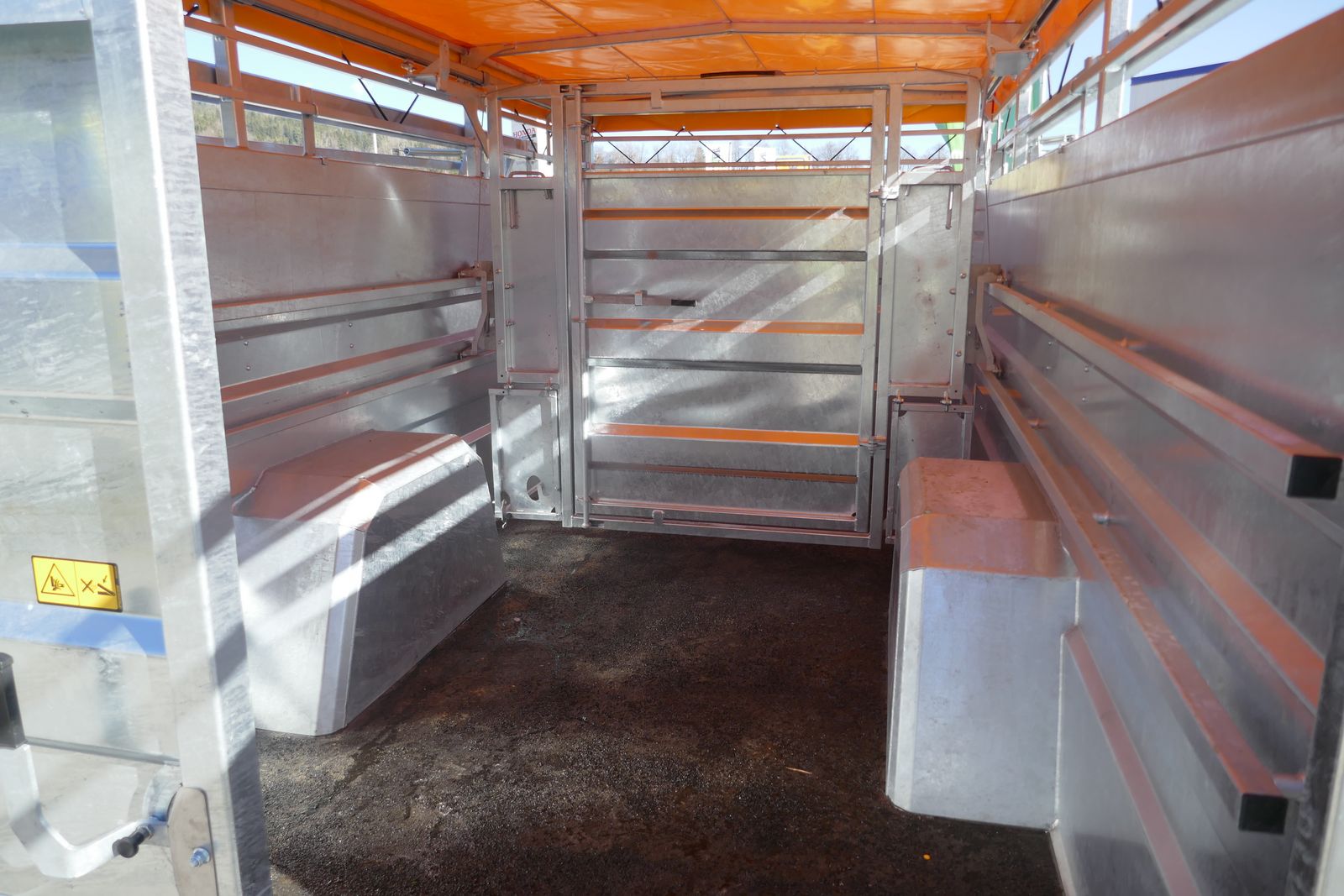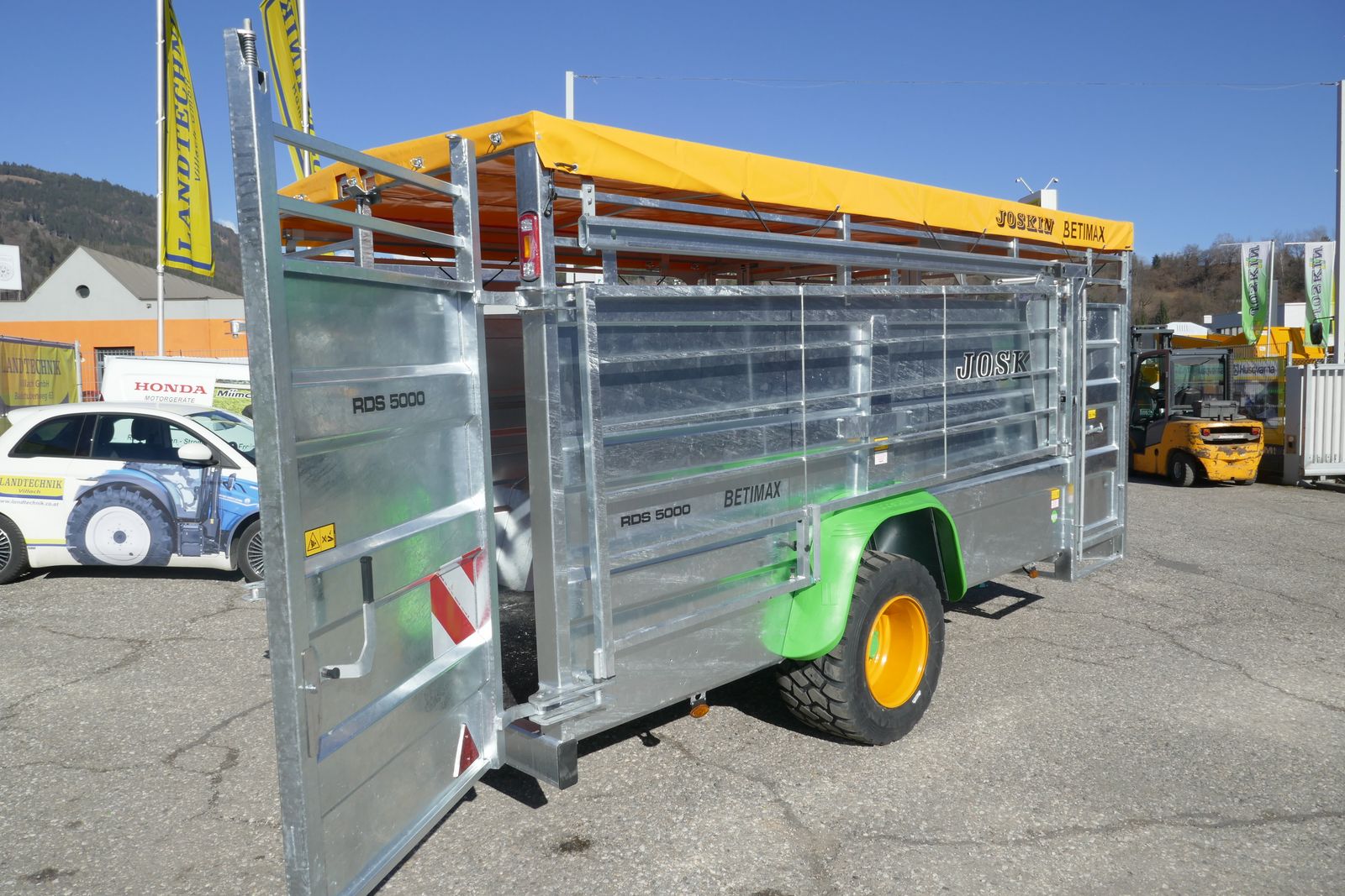Joskin Viehanhänger RDS 5000 hydr. absenkbar, mit Planenaufbau, innere Trennwand verstellbar, Kunstharzboden, vordere Einstiegstür, Bereifung: 445/45R19,5, mit Kunststoffkotflügel, Druckluftbremse, selbsttragende Seitengitter von 3,5 m auf Führungsschiene mit Federung, feuerverzinkter Anhänger, gefederte Deichsel, 25 km/h COC-Papier, ideal für das Tierwohl und Langlebigkeit, Optional: hydraulische Kombibremse lieferbar, Lieferung frei Haus in Österreich!
