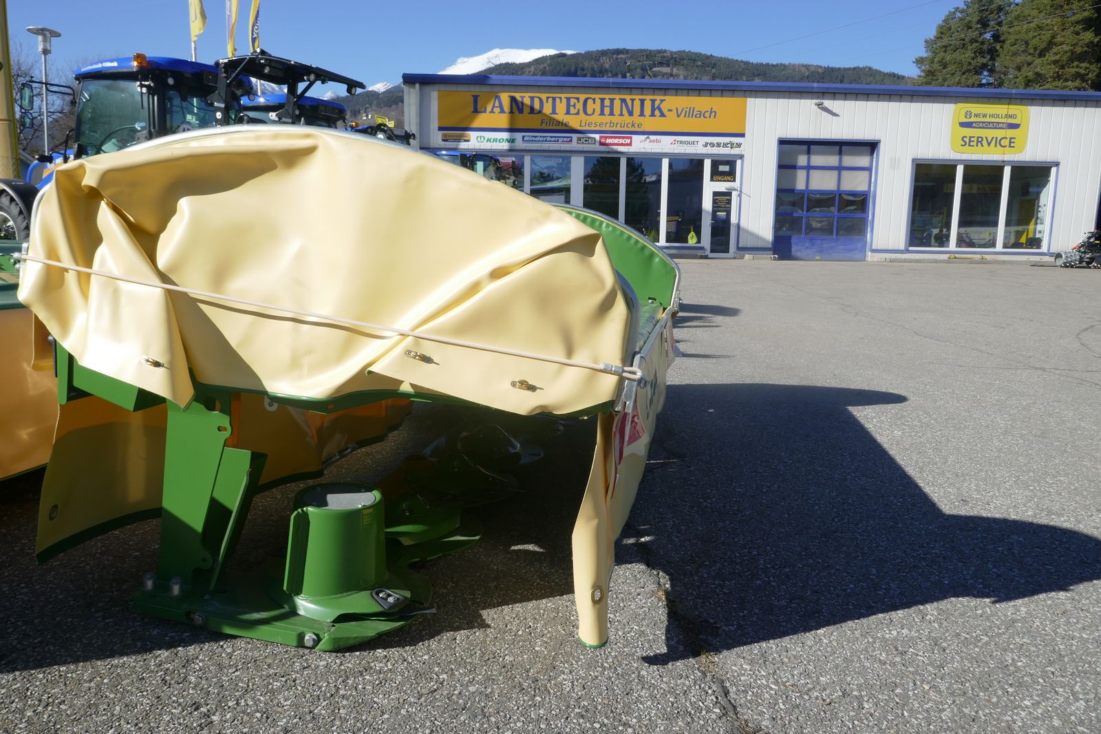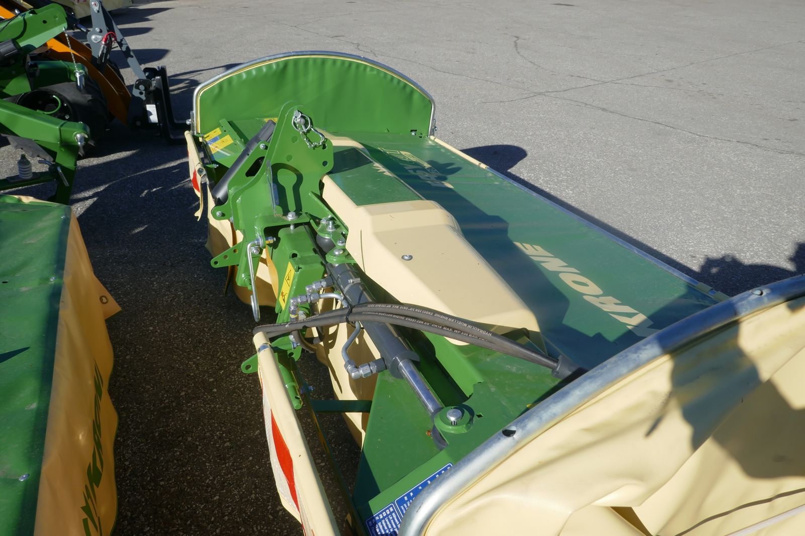 Krone F 280 Highland Frontscheibenmähwerk, Klingenschnellverschluss, Alpin Ausführung, mit 3-Punktanhängung, hydraulischer Seitenverschub, mechanisch Außenschutz, Gelenkwelle, Zapfwelle 540/1000 für links und rechts umstellbar, Standort: Lieserbrücke, prompt lieferbar.