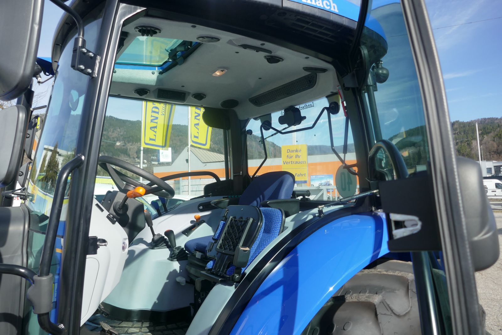 New Holland T4S.55, mit FPT Motor, 40 km/H, 12/12 Wendegetriebe, Lastschaltbare Zapfwelle 540/540E, 2 DW Steuergeräte mit Deluxe Kupplungen hinten, Bereifung: 420/70-28 und 320/70-20, Komfortkabine mit Heizung, Lüftung, Dachfenster, Luftsitz, Beifahrersitz, Radio, verstellbares Lenkrad, Lichtpaket, Ausstellungsmaschine, prompt verfügbar.