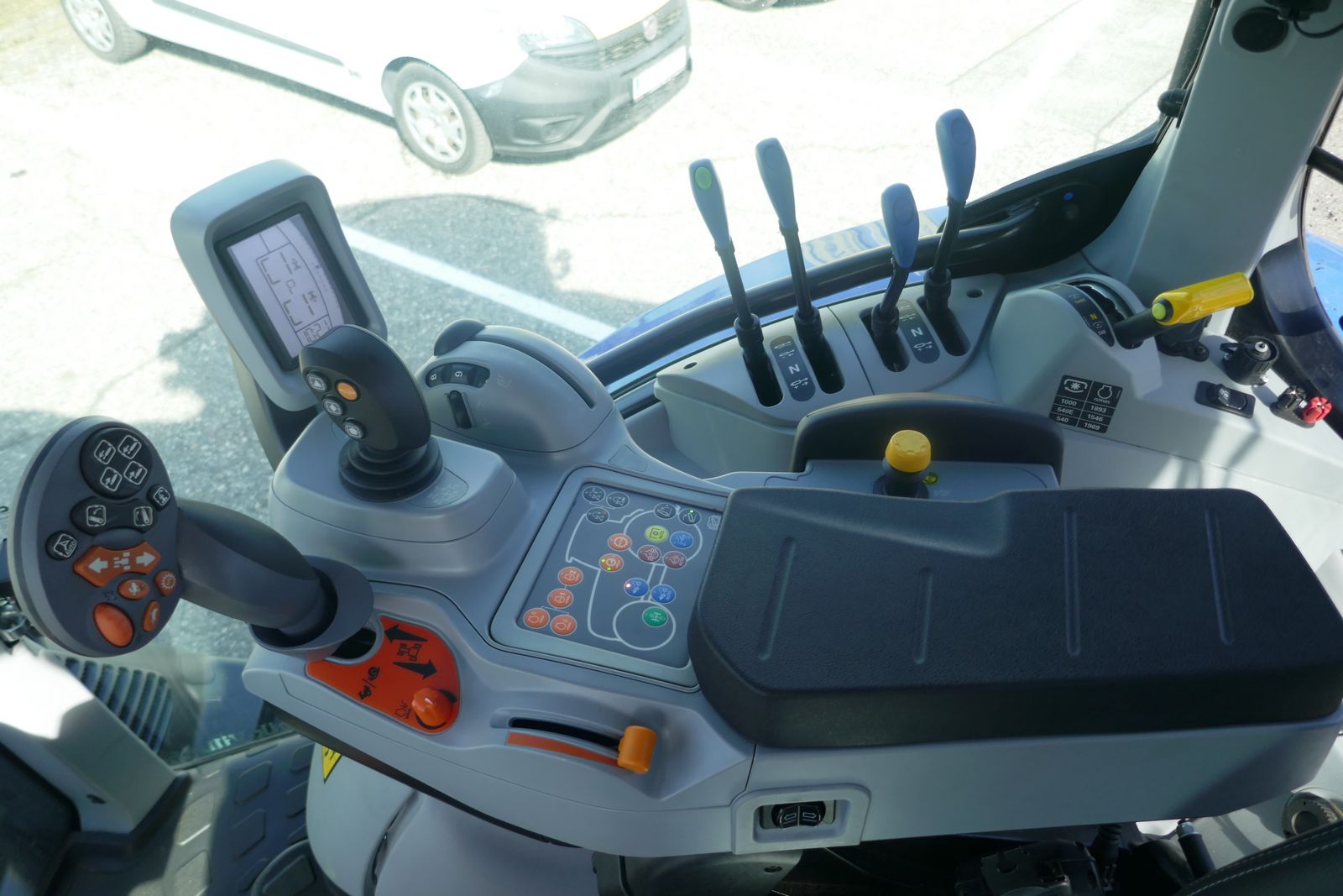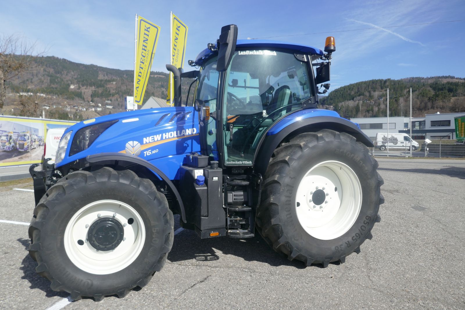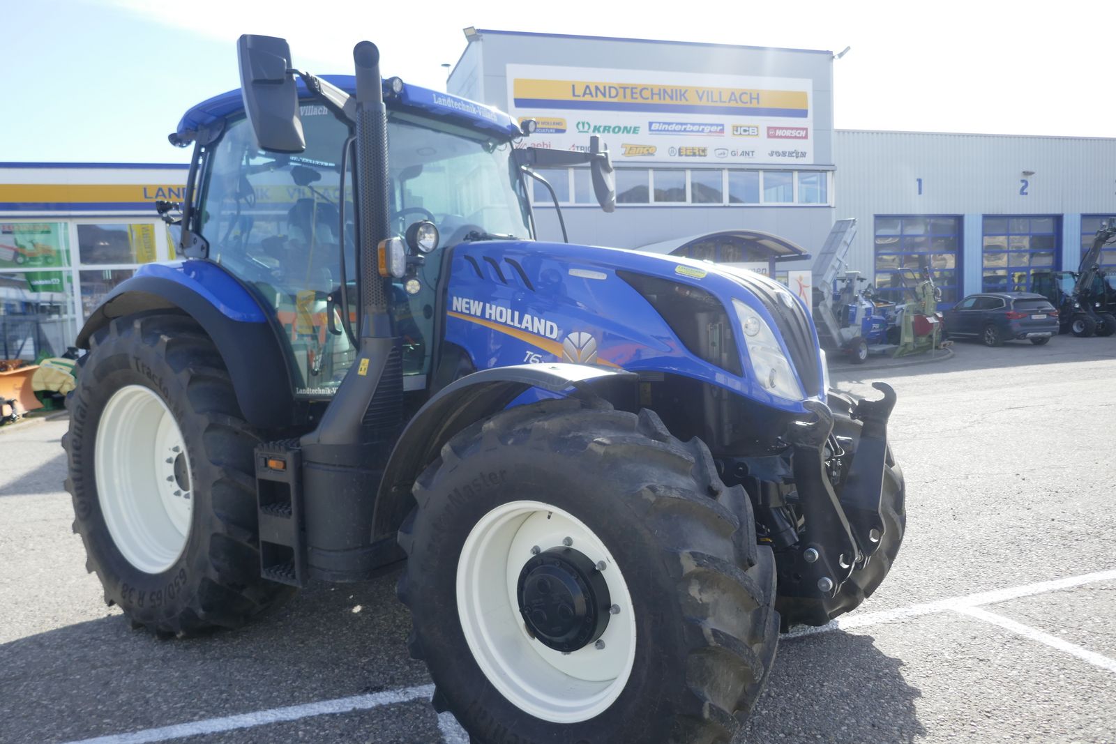New Holland T6.160 DyC kleiner 6-Zylinder-Traktor mit Motorstaubremse, 48/48 mit Kriechgang, 50 km/h Dynamic Command Getriebe, 8-fach Lastschaltung mit Automatikfunktion, mit Stop & Go, gefederte Vorderachse mit 4 Radbremse und integrierter Fronthydraulik + 2 Kippleitungen, CCL Hydraulikanlage, Druckluftbremse und hydraulische Bremse, elektrische Parkbremse, gefederte Niedrigkomfortkabine mit SideWinder Armlehne, mit Lederlenkrad, mit Klima, Beifahrersitz, LED-Lichtpaket, 4 mechanische DW Steuergeräte für hinten, 2x DW Zwischenachssteuergerät proportional mit Joystick für vorne, mit Tankschutz, Bereifung 650/65-38 u. 540/65-28, Vorführmaschine, Standort: Lieserbrücke, prompt verfügbar.