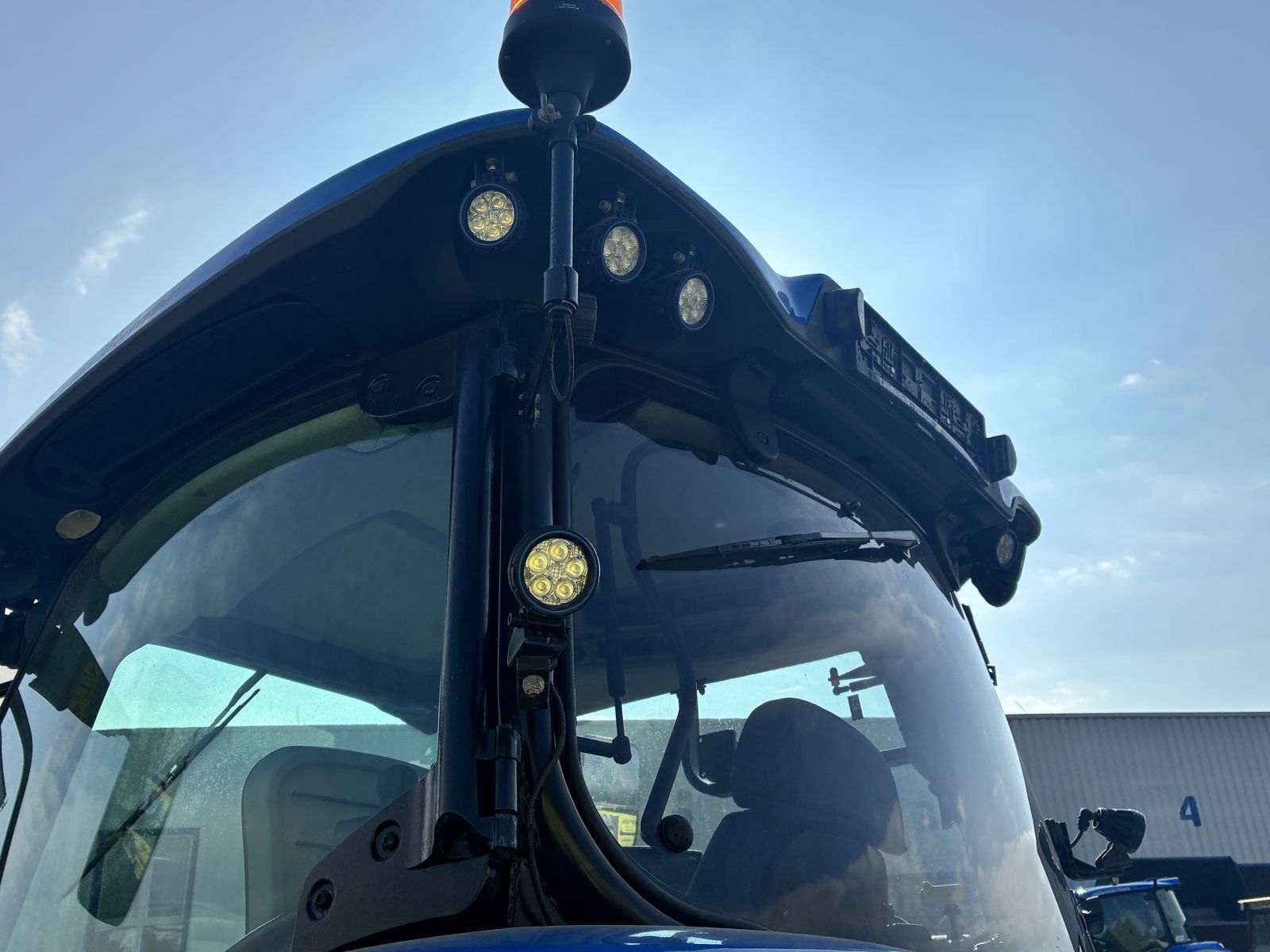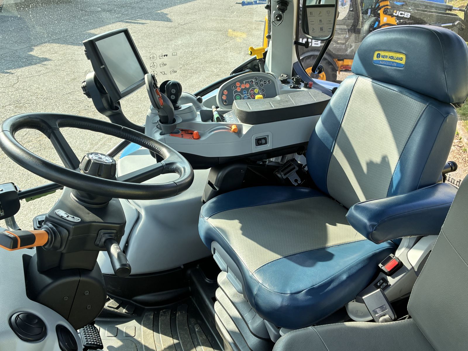 New Holland T6.180 AutoCommand - 6-Zylinder-Motor- und Getriebevorwärmer, mit Motorstaubremse, 50 km/h AutoCommand Getriebe mit aktiver Stillstandsregelung, gefederte Vorderachse mit 4 Radbremse und integrierter Fronthydraulik und 2 Kippleitungen, Druckluftbremse, hydraulisches Bremsventil, elektrische Parkbremse, gefederte Komfortkabine mit SideWinder Armlehne, Dynamic Komfortsitz mit Sitzheizung, Lederlenkrad, Klimaautomatik, Beifahrersitz, LED-Lichtpaket, 4 DW Steuergeräte hinten, 2 elektrische DW Zwischenachssteuergerät proportional mit Joystick für vorne, autom. Zugmaul,