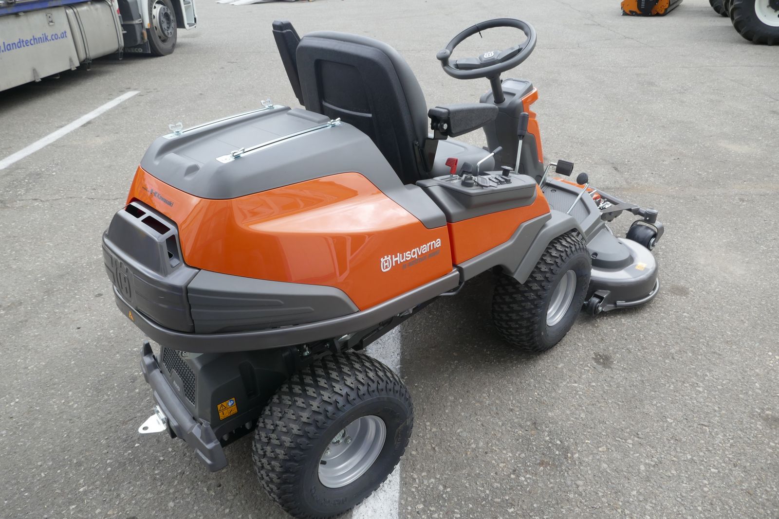 Husqvarna Kommunalrider R 420TsX AWD , Motor: Kawasaki V-Twin FS 651V, Leistung: 14 kW / 18,77 PS, Mähbreite: 122 cm, Gewicht ohne Mähdeck: 316 kg, Ausstattung: Allradantrieb, Hydrostat, Zweizylinder-Motor, Servolenkung, HMI Display, integrierte Konnektivität, verstellbares Lenkrad, LED Scheinwerfer, XChange-Anbaurahmen, Becherhalter, verstellbarer Sitz, Standort: Lieserbrücke, prompt verfügbar.