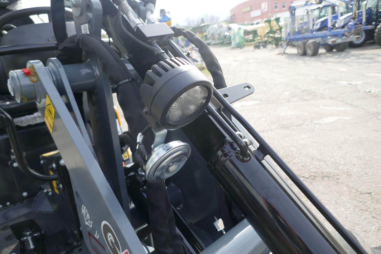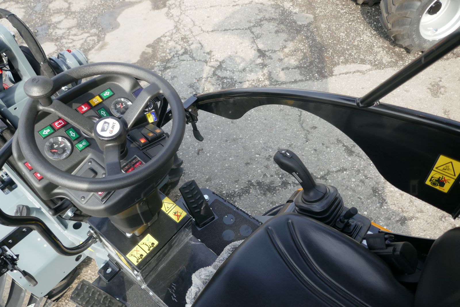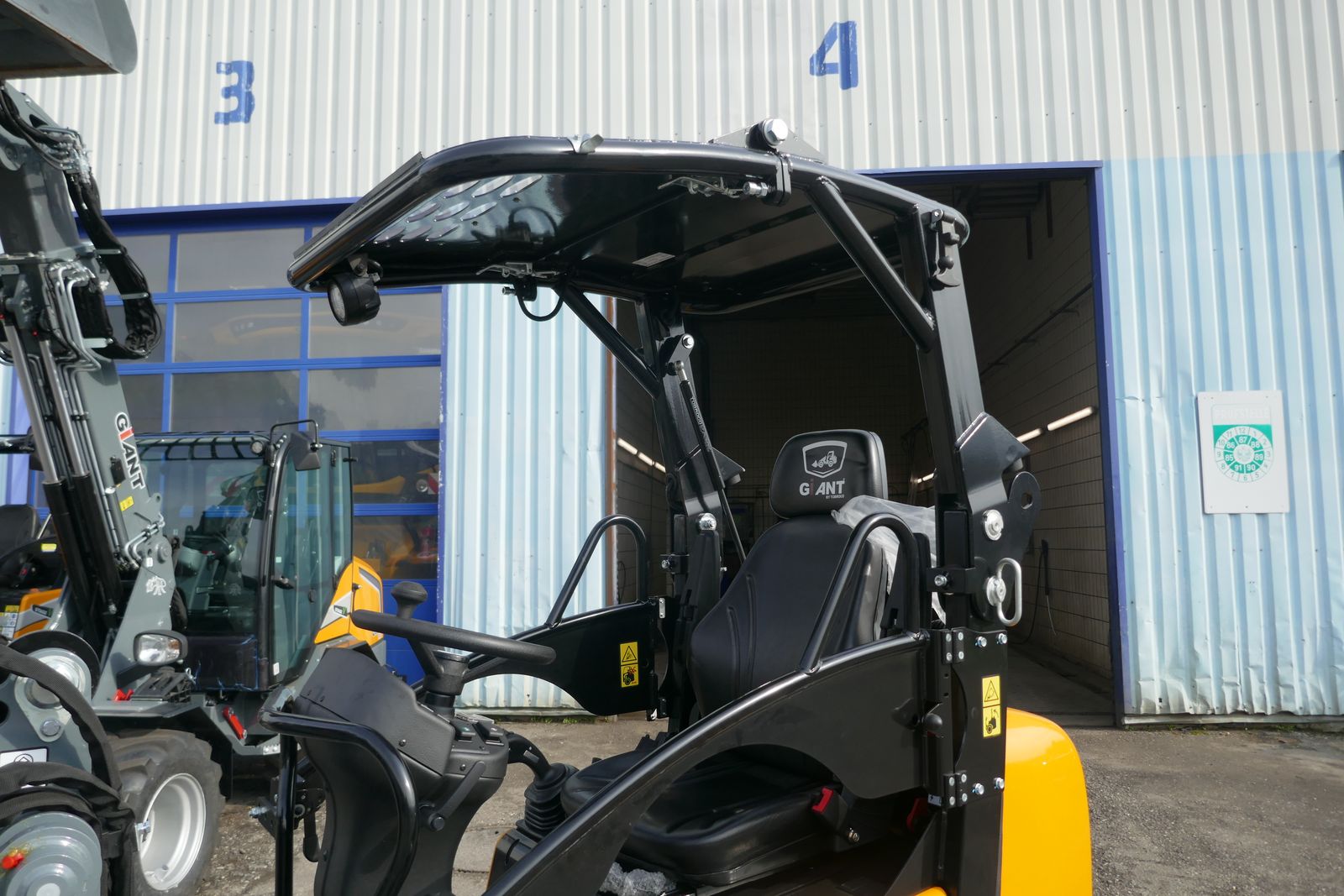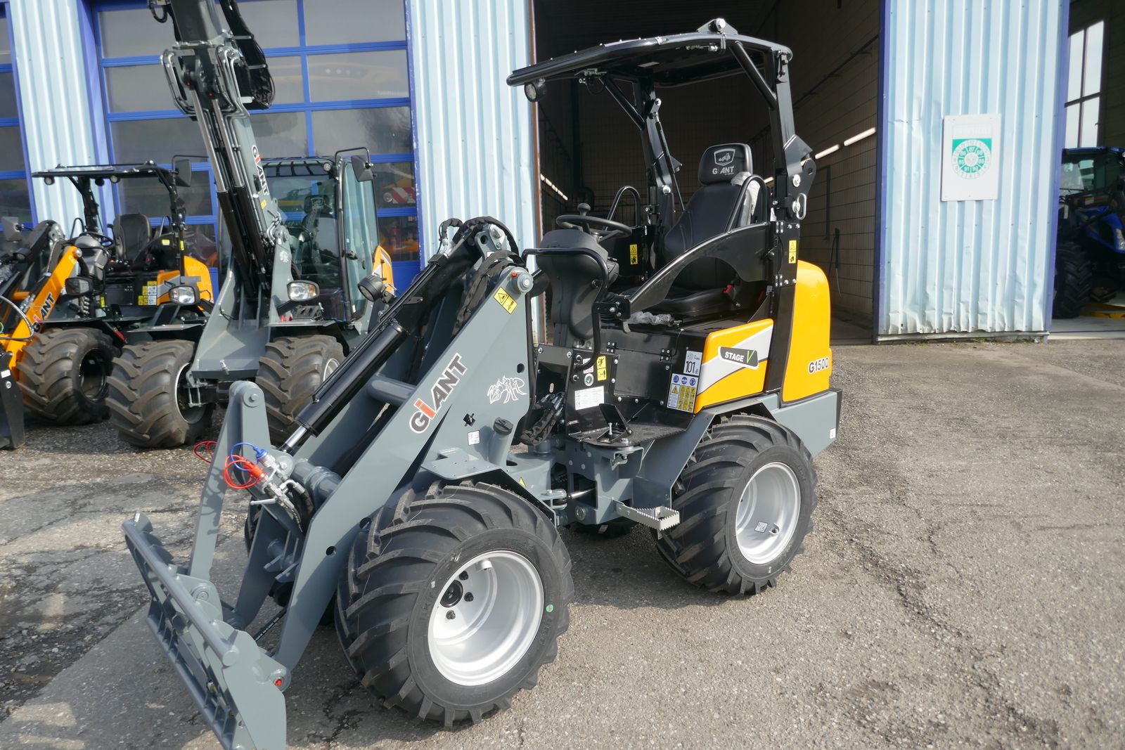 Giant Hoflader G 1500 mit klappbaren Fahrerschutzdach, Euro Werkzeugaufnahme mit hydraulischer Verriegelung, Heckgewichtsplatte 90 kg, 3 LED Arbeitsscheinwerfer, hydraulik Kreislauf 3. Linie am Hubarm,