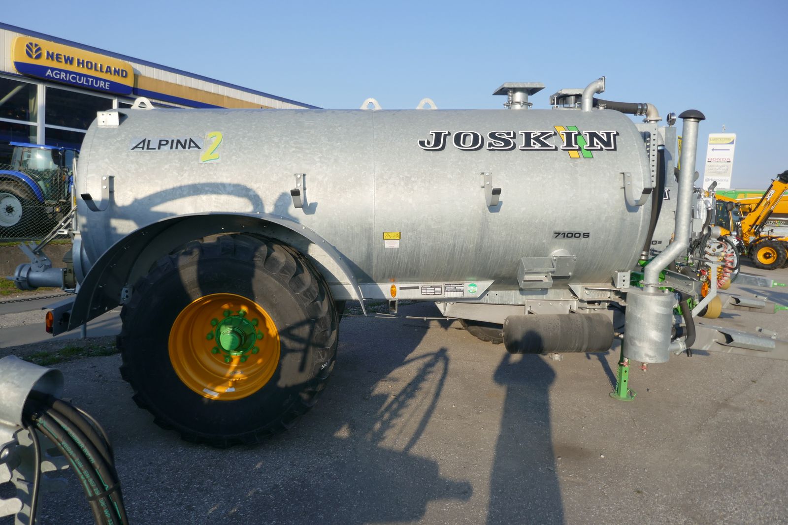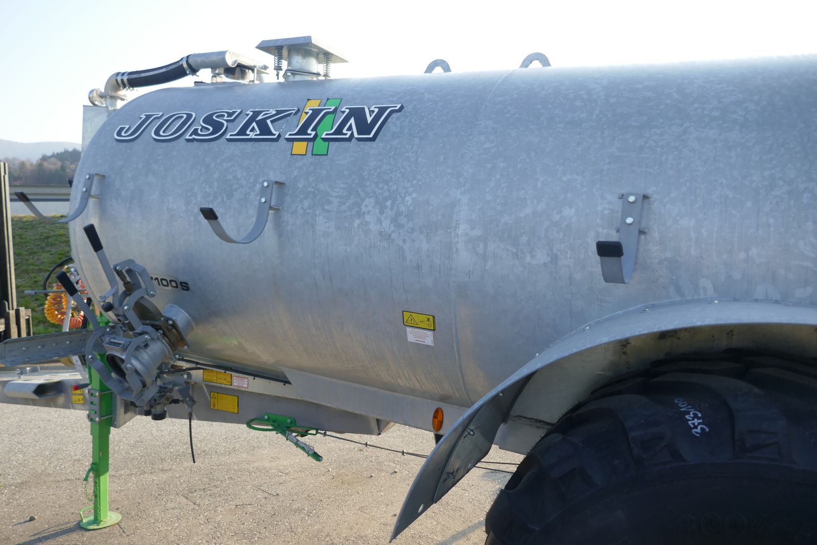 Joskin Güllefass Alpina 2 7100 S, mit Radkasteneinbau, Vakuumpumpe, MEC 8000, mit automatischer Schmierung, Öko-Siphonabscheider, Vorausrüstung Bergentleerungssystem, Bereifung: 800/45R26,5, Druckluftbremse und hydraulische Bremse kombiniert, ALB Regler auf Füllstandsanzeiger mit Schwimmer, Glockenschieber, Ansaugschieber 6 Zoll mit schwenkbarer Klemmbacke, Typ Perrot, mit Saugschlauch, Exaktverteiler, einseitige Weitwinkelgelenkwelle, Ausstellungsfass, prompt verfügbar.