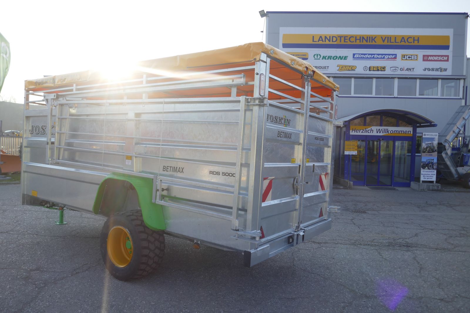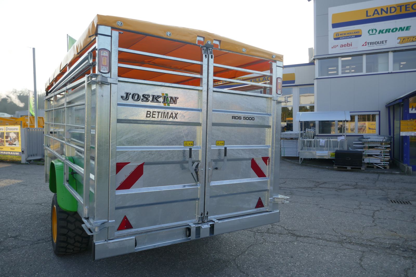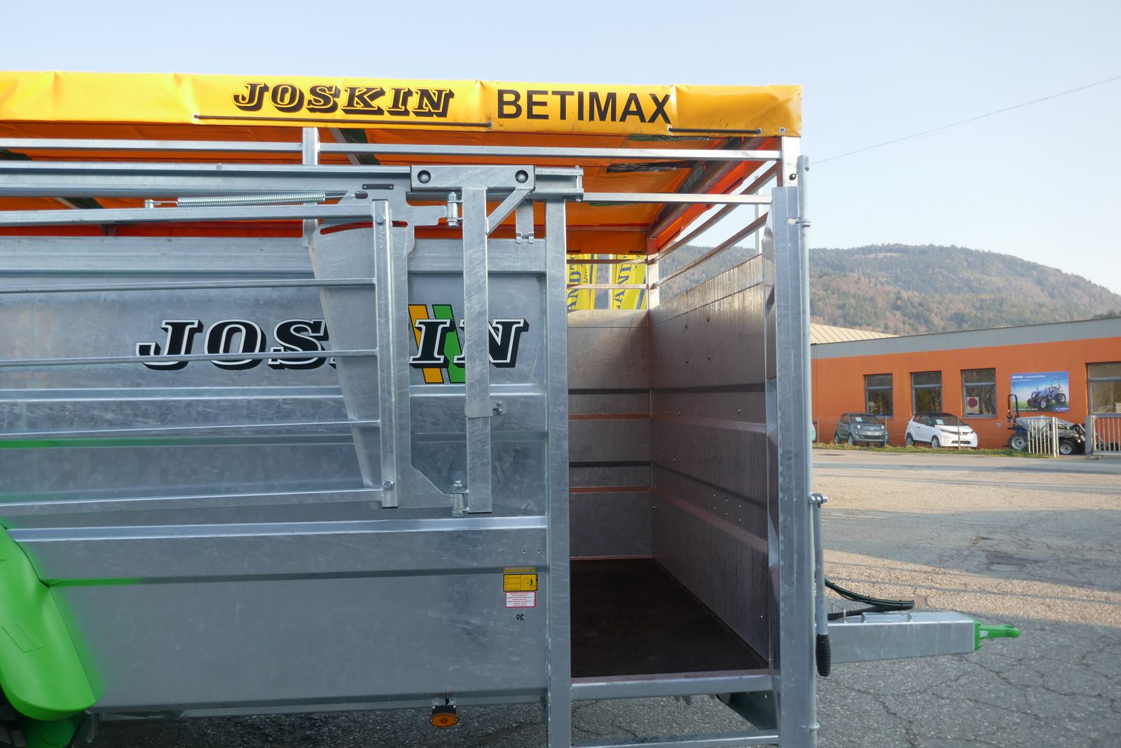 Joskin Viehanhänger RDS 5000 hydr. absenkbar, mit Planenaufbau, innere Trennwand verstellbar, Kunstharzboden, vordere Einstiegstür, Bereifung: 445/45R19,5, mit Kunststoffkotflügel, Druckluftbremse, selbsttragende Seitengitter von 3,5 m auf Führungsschiene mit Federung, feuerverzinkter Anhänger, gefederte Deichsel, 25 km/h COC-Papier, ideal für das Tierwohl und Langlebigkeit, Optional: hydraulische Kombibremse lieferbar, Lieferung frei Haus in Österreich!