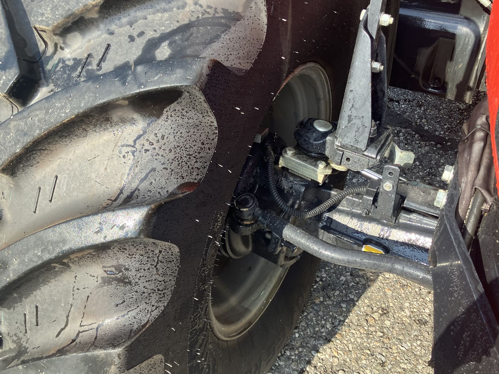 Elektrohydraulische Allrad- und Differenzialsperrenzuschaltung, doppeltwirkender Frontkraftheber mit EHS und vier Leitungen, Unterlenker mit Schnellkupplern Kat. II, 4 x DW Zusatzsteuergeräte hinten, hydraulisches Bremsventil, druckloser Rücklauf, 2 Zusatzhubzylinder, Druckluftanschluss hinten zum auf-/ausblasen,
