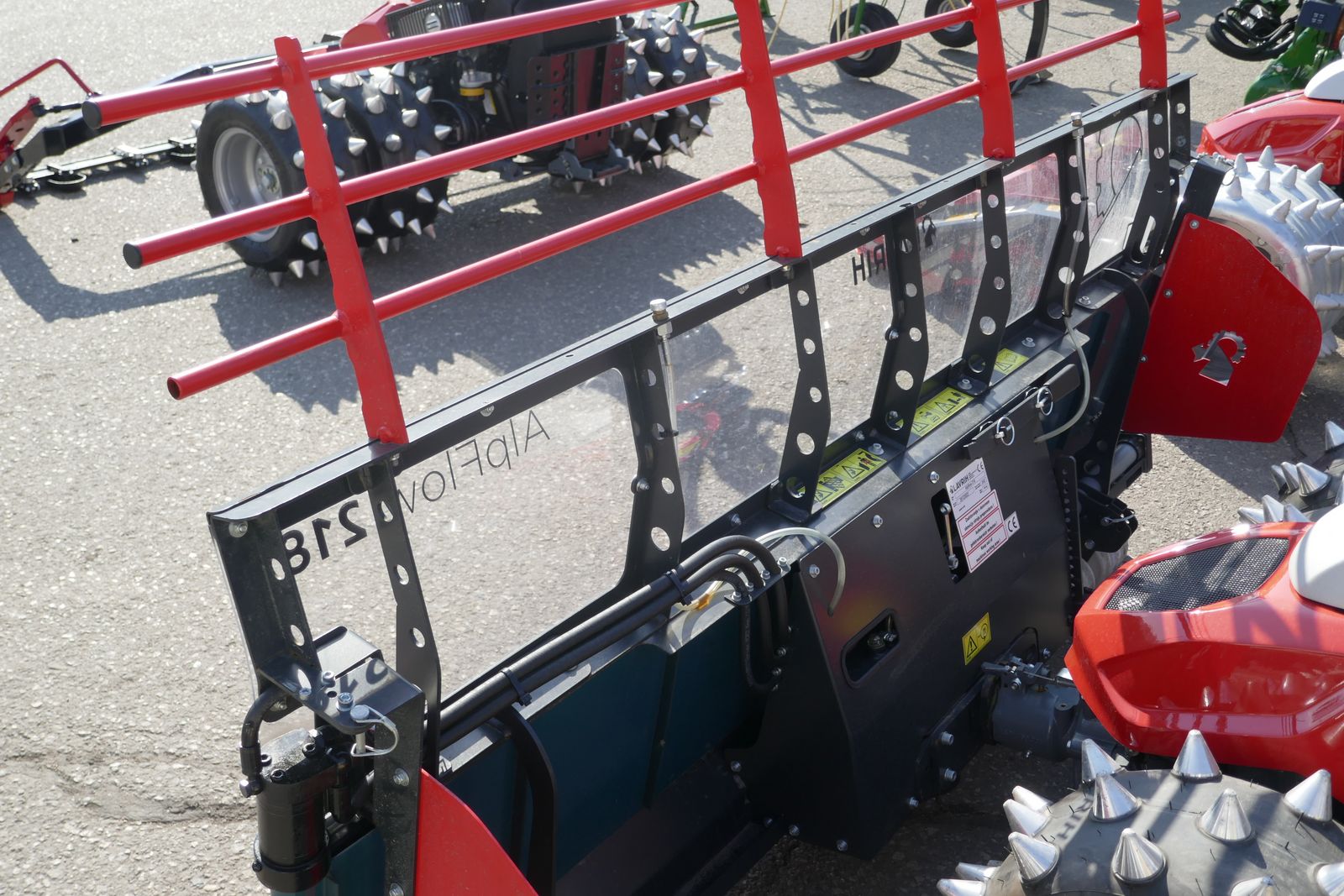 Aebi AlpFlow 218 die große Erleichterung für die Bergbauern Pick-Up Schwader mit Querförderband und Seitenbleche mit Anbauflansch für Aebi Motormäher, Förderband links und rechts umschaltbar, klappbare Seitenschilder, Aufsatz für Schiebeschild, Bodenstützräder verstellbar, ca. 190 kg Eigengewicht, Ausstellungsmaschine, prompt verfügbar.