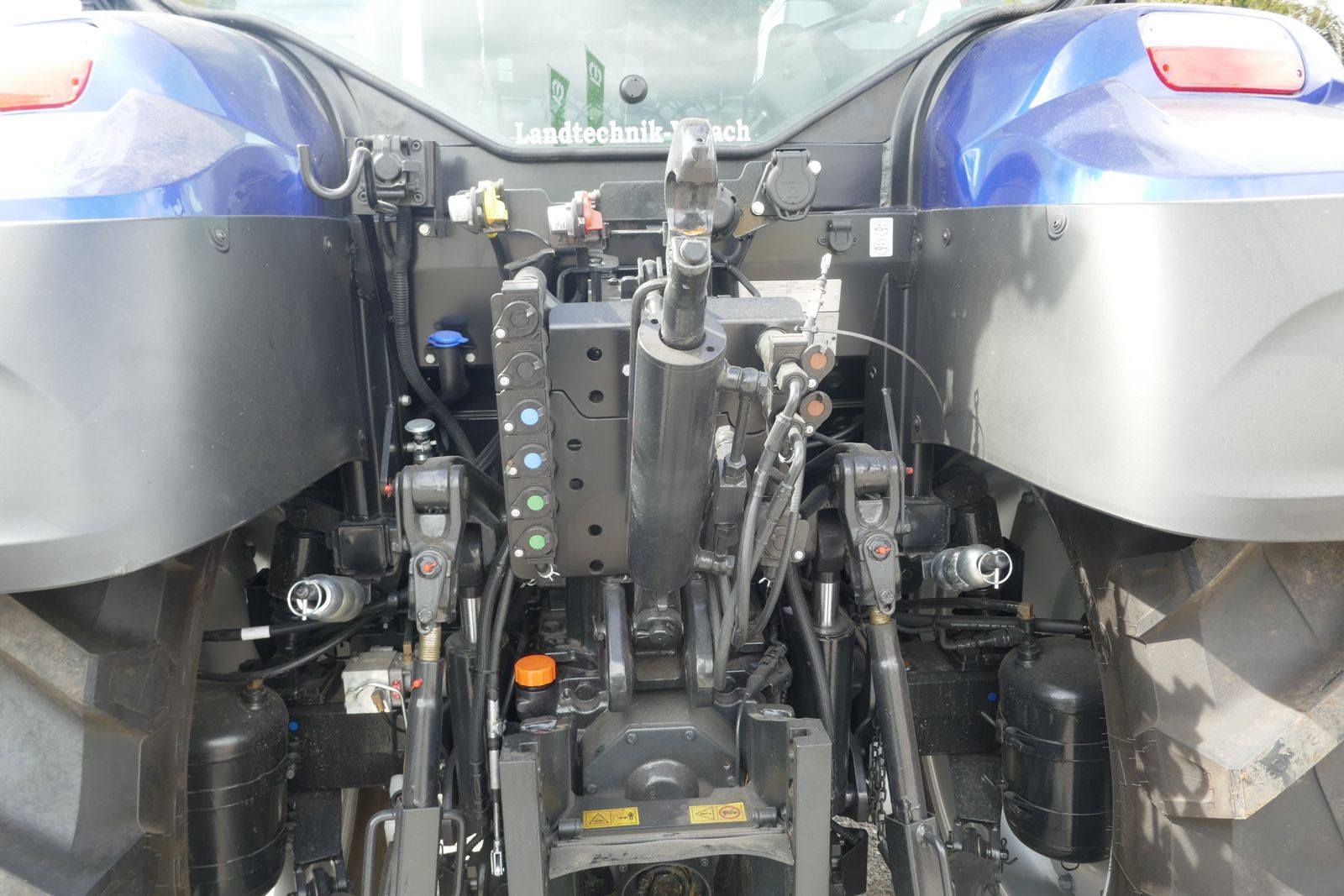 New Holland T5.140 AC Blue Power Ausführung, mit 4,5-Liter-Motor FPT, mit Motorstaubremse, mit gefederter Vorderachse, integrierte Fronthydraulik mit Zapfwelle und mit 2 Kippleitungen, 7-polige Steckdose und Außenbetätigung, Bereifung 600/65-34 u. 480/65-24 Michelin, Felgenfarbe Silber, 6x DW Steuergeräte elektrisch mit Joystick, CCL Hydraulikanlage, mit Power Byond Anschluss, HTS 2 Vorgewendemanagment,