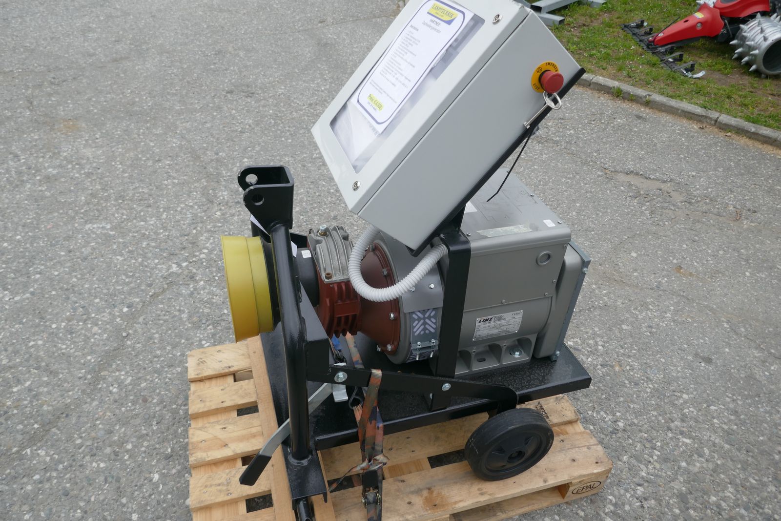 Hartner Zapfwellengenerator 30,0 kVA, leichter Transportschaden, mind. Traktorzapfwellenleistung 75 PS, Langsamläufer 1.500 Umdrehungen pro Minute, inkl. AVR-Regelung, Gewicht: ca. 350 kg, Robuster lackierter Grundrahmen mit Dreipunktaufhängung, Synchrongenerator, Isolationsüberwachung für Haus- und Feldbetrieb, Generatorschutzschalter, Umschalter für Haus- und Feldbetrieb, Frequenzanzeige + Spannungsanzeige + Ampereanzeige, Hausbetriebsstecker: 1x 63A; Feldbetriebsstecker: 1x 32A - 400v ; 1X 16a - 400V ; & 1x Schucko 230V, Staubschutz für Ansaug- & Ausblasfilter, Inkl. 63 A Stecker für Hauseinspeisung, leichter Trasportschaden, Ausstellungsgerät, ab Lager Villach, prompt verfügbar.