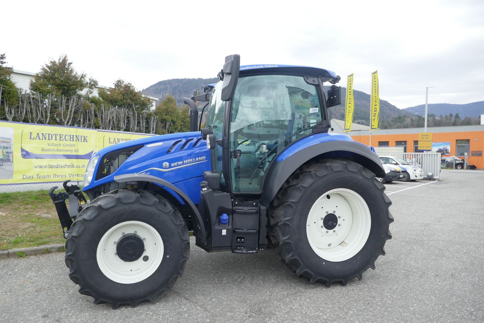 New Holland T5.110 DC Kärnten Edition, 4 Zylinder FPT Motor, 4,5 Liter Hubraum, Abgasstufe 5, 8-fach Lastschaltung mit Automatikfunktion (24/24) mit Stop & Go, 40 km/h, elektrischer Parkbremse, integr. Fronthydraulik mit 2 Kippleitungen und 7-poliger Steckdose, gef. Vorderachse, SideWinder-Armlehne für vorne, mit elektrischen Joystick, Druckluftbremse, druckloser Rücklauf, Bereifung: 600/65-34 u. 480/65-24, gefederte niedrige Komfort-Kabine Supervision mit Panoramafenster und Dachluke, Komfort-Sitz, Beifahrersitz, Klima, Radio, LED-Lichtpaket, Schulungsmaschine, prompt verfügbar.
