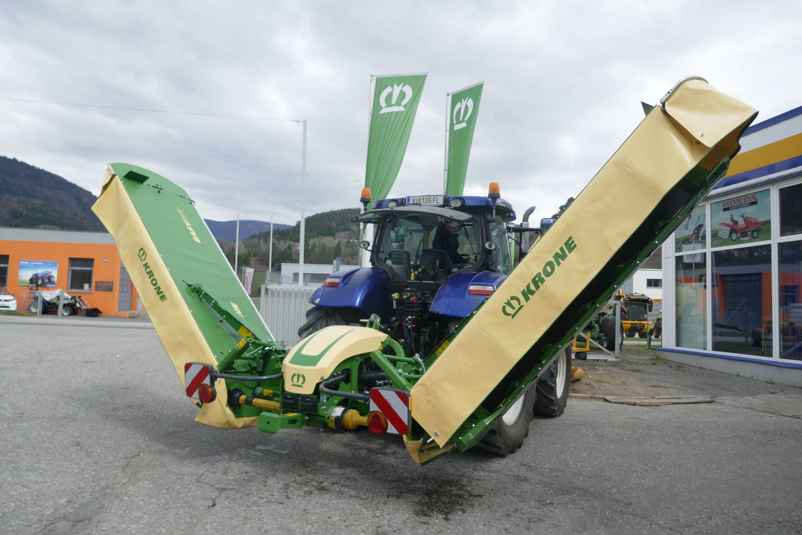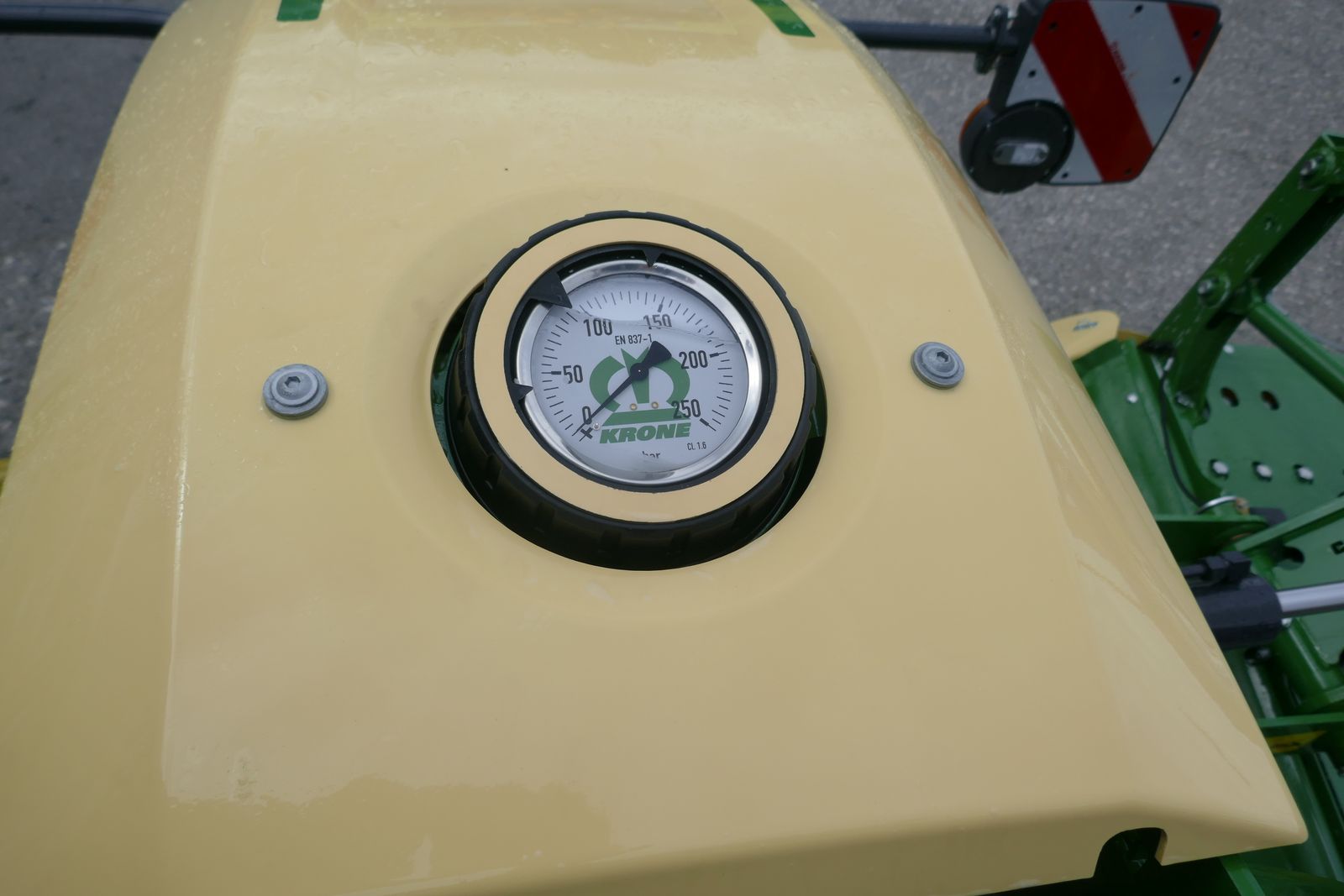 Krone Scheibenmähkombination B 870 mit Klingenschnellverschluss, hydraulischer Mähholbenentlastung, Eigengewicht 1350 kg, erforderliche hydr. Anschlüsse 1x EW und 1x DW, gewichtsoptimierte Rahmenkonstruktion, Krone DuoGrip Mähwerksaufhängung, Einstellbare Anfahrtssicherung, äußerer Mähschutz klappbar, Mähwerk mit Scheibensicherung SafeCut, Mähbalken Lebensdauer geschmiert, LED-Beleuchtung, entnehmbare Klingenbox, mit ISOBUS Anschluss.