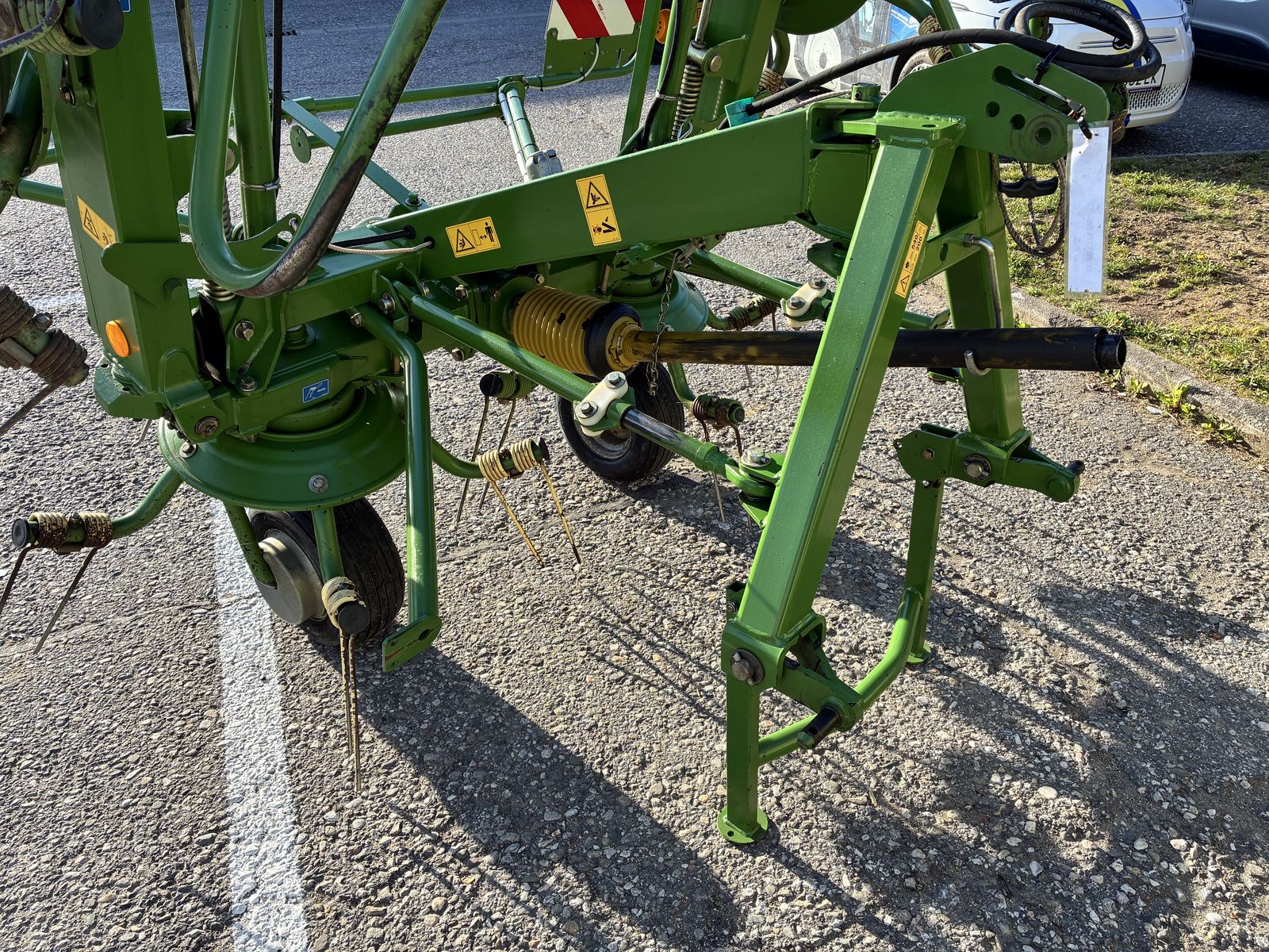 Krone KW 6.02/6, hydraulische Klappung, 5 Zinkenarme, Schwenkbock und Dämpferstreben, Abstellstützen vorne und hinten, Streuwinkelverstellung, Zinkenverlustsicherung, Grenzstreueinrichtung, Gelenkwelle, Beleuchtung, Werkstattgeprüft, Maschine ist in sehr schönen Zustand, prompt verfügbar.