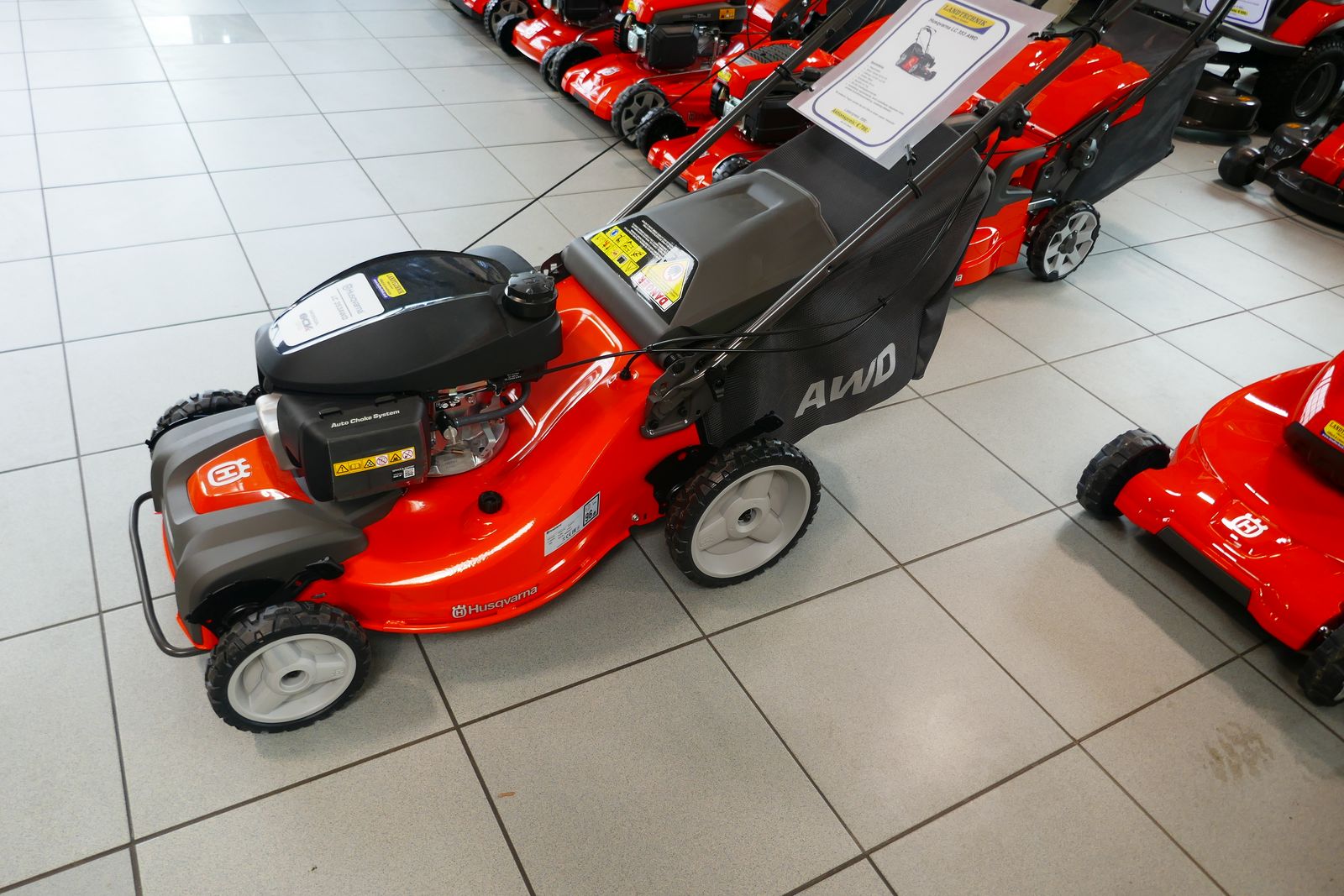 Husqvarna Allrad-Rasenmäher LC 353 AWD, Motor Honda GcV 170/166 cm³, Allrad-Antrieb/ Auto-Walk, 53 cm Schnittbreite, Stahlgehäuse, 65 Liter Fangvolumen, 3 verschieden Mähmethoden Fangen/Heckauswurf/Bio Clip, ergonomischer, verstellbarer Griff, einfache Schnitthöhenverstellung, prompt verfügbar.
