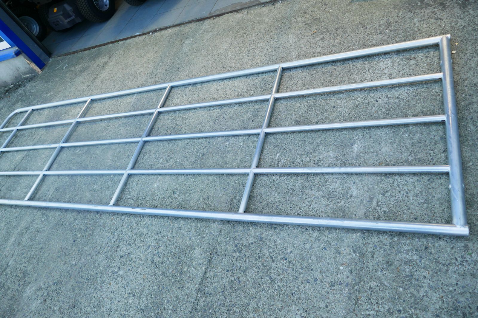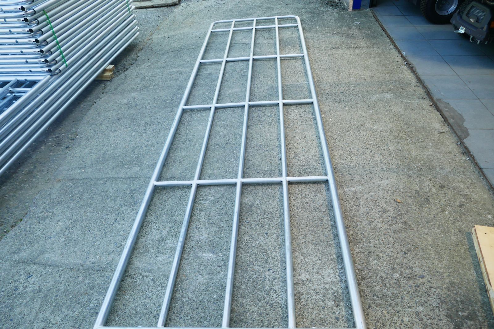 Patura Compact-Weidezauntor, Länge 5,00 – 6,00 m, 4 Streben (Montagemaß: 4,80 - 5,80 m), Höhe: 1,10, komplett feuerverzinkt, ausziehbar und sicher, mit Montageteilen, Rohrdurchmesser: Grundteil Rahmen 48 / 42 mm / Grundteil innen 32 mm / Einschubteil Rahmen 32 mm / Einschubteil innen 25 mm,Ab Lager Villach oder Lieserbrücke, prompt verfügbar.