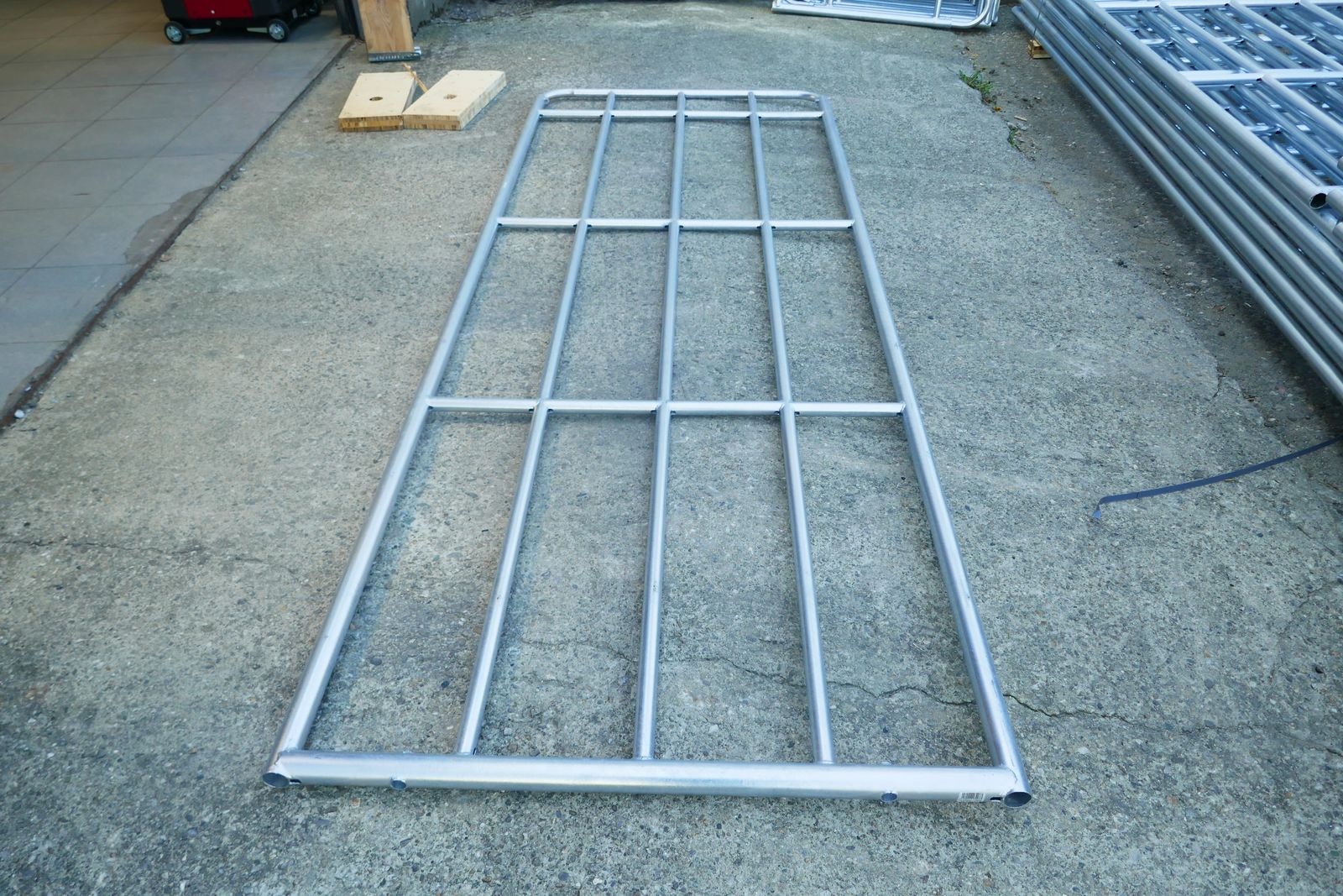 Patura Compact-Weidezauntor, Länge 4,00 – 5,00 m, 3 Streben (Montagemaß: 3,90 - 4,80 m), Höhe: 1,10, komplett feuerverzinkt, ausziehbar und sicher, mit Montageteilen, Rohrdurchmesser: Grundteil Rahmen 48 / 42 mm / Grundteil innen 32 mm / Einschubteil Rahmen 32 mm / Einschubteil innen 25 mm, ab Lager Villach und Lieserbrücke, prompt verfügbar.