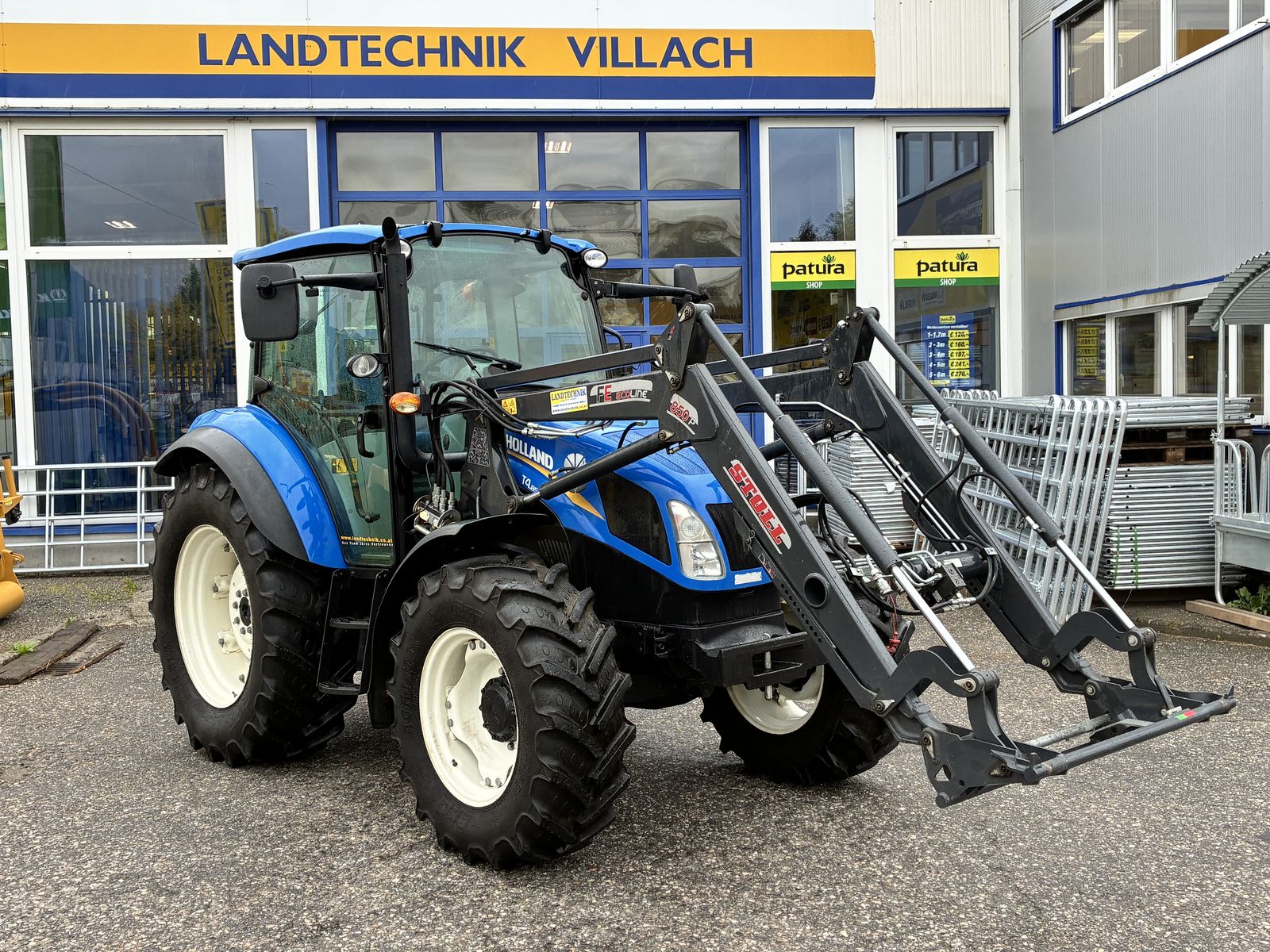 New Holland T4.85, 4-Zylinder, Komfortkabine mit Klima, Radio, Luftsitz und Beifahrersitz, Dachfenster, Lichtpaket, Stoll Frontlader FE 850 P, mit Parallelführung und Hinterachsabstützung, Euro-Aufnahme, Hydro-Fix Schnellkupplung, 3-Linie, ohne Werkzeug, EHR mit Außenbedienung am Kotflügel, 24x12 Lastschaltgetriebe, 40 Km/h. Bereifung: 480/70 R 34 und 380/70 R 24, Hydraulik mit Zusatzhubzylinder, Schnellkuppler, stufenlos verstellbare Anhängevorrichtung mit automatischem Zugmaul, 3 x DW Steuergeräte hinten, 2x DW Zwischenachssteuergerät mit Joystick, war nur 2. Traktor im Einsatz, gepflegter Zustand, prompt verfügbar.